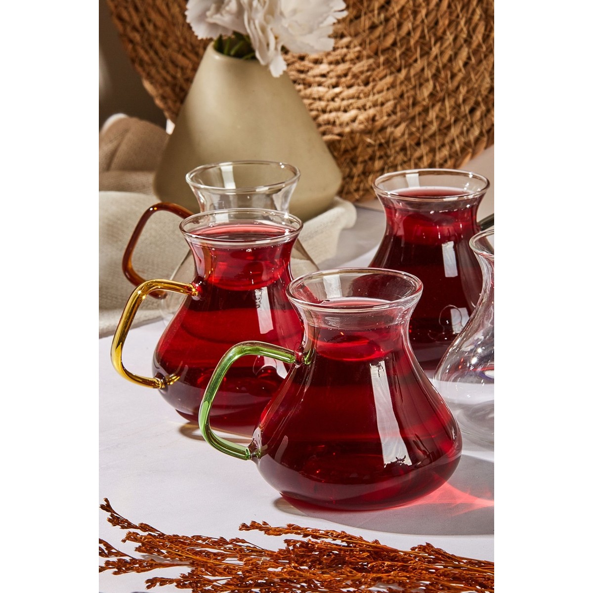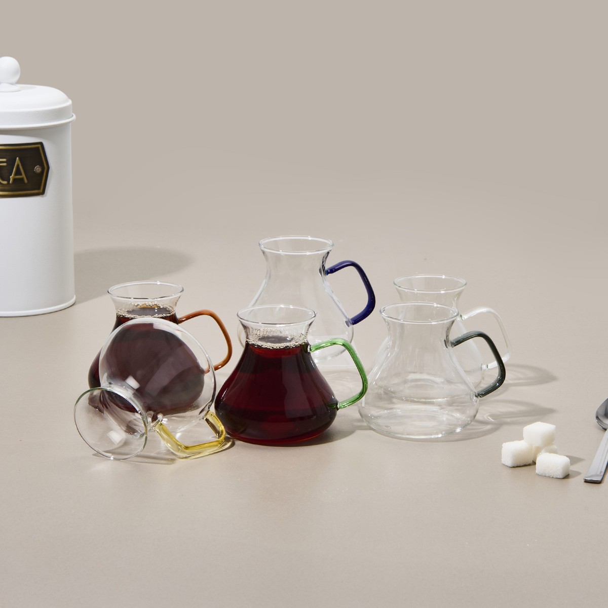 Perotti Ehl-i Keyf Kulplu 6’lı Çay Bardağı – Renkli / Şeffaf