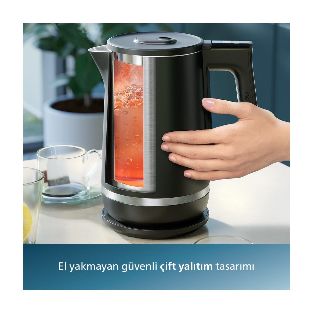 Philips HD9396/90 7000 Serisi Çift Yalıtımlı Su Isıtıcısı, 1,7 L kapasite, Yaylı Kapak, Hızlı Kaynatma, Kolay Temizlik,