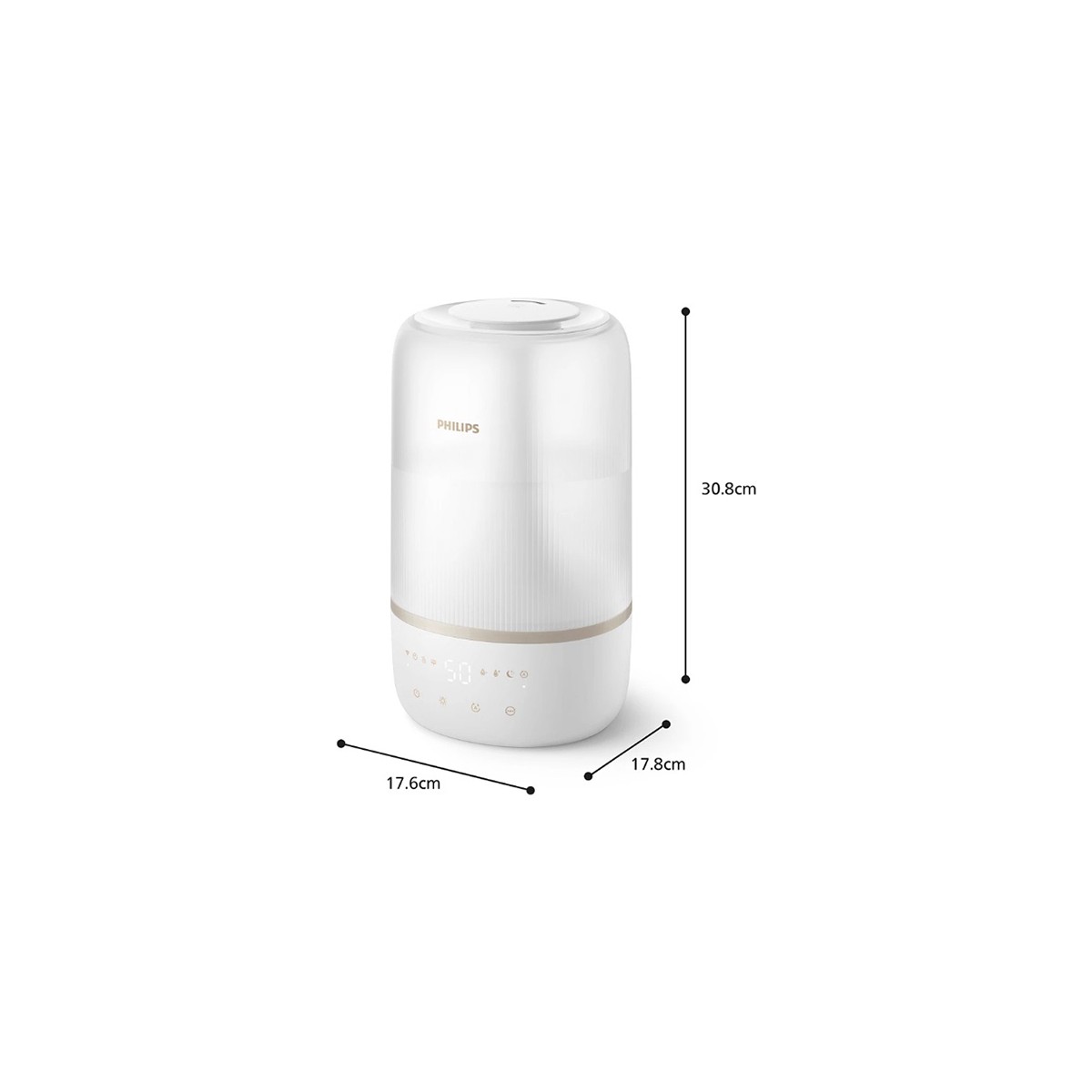 Kompakt boyutuna aldanmayın: 275 ml/sa güçlü nemlendirme hızıyla bu cihaz, 41 m²’ye kadar büyüklükteki odaları etkili bir şekilde nemlendirir (2,3). Tercih ettiğiniz performans ve konfor seviyesi için 3 fan hızı ve otomatik ayarlar arasından seçim yapın.