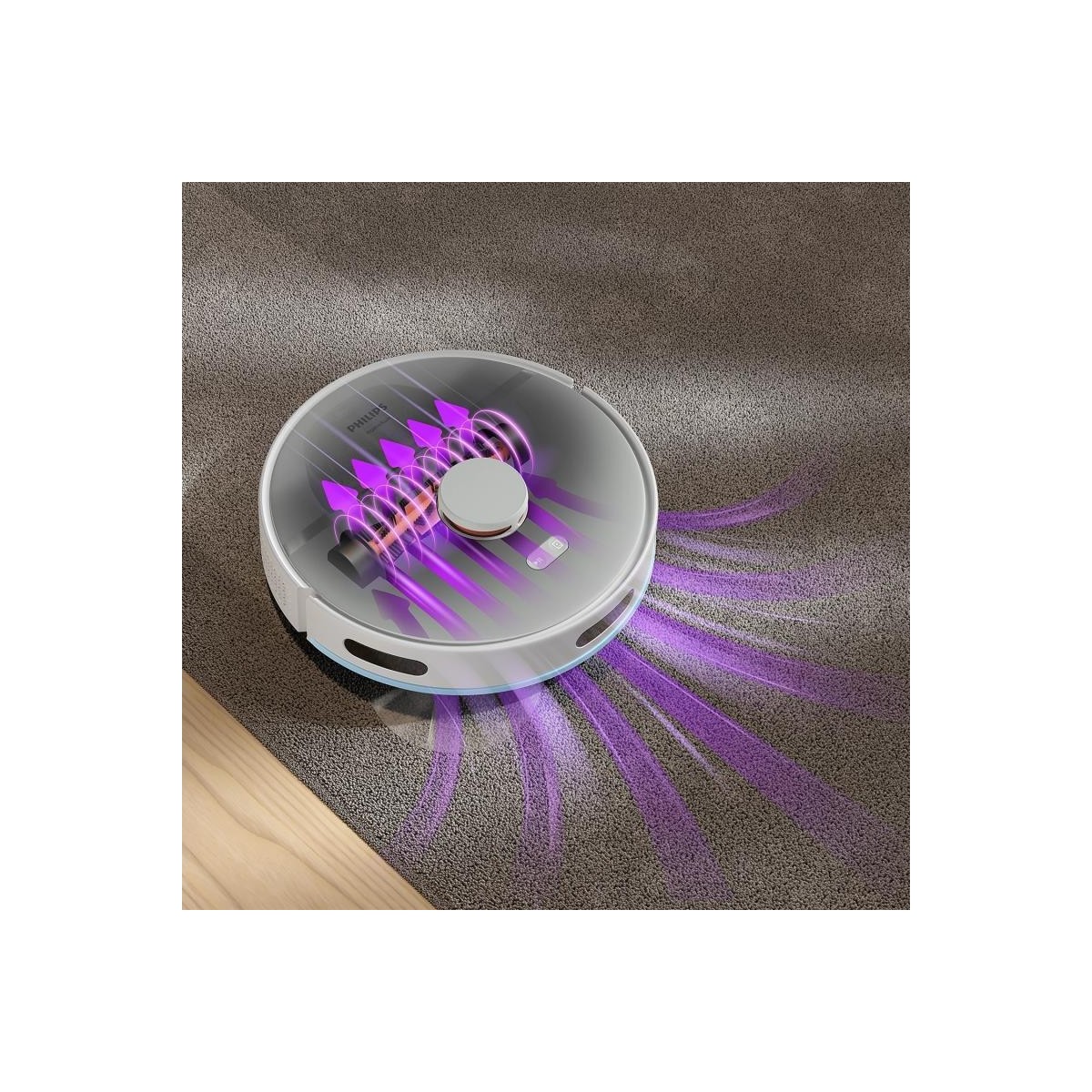 Robot, 6000 PA emiş gücü¹ sayesinde kırıntı ve evcil hayvan tüyü gibi büyük kirleri toplayabilir. Yerde günlük olarak biriken kirleri gidermenin yanı sıra halı ve kilimlerdeki daha ince tozları da ortadan kaldırır².