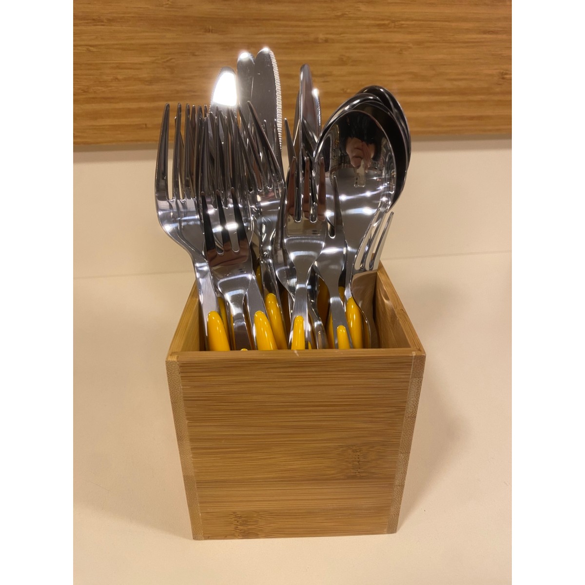 Kaşık Çatal Bıçak Takımı 24 Parça Çelik Sarı Kulplu