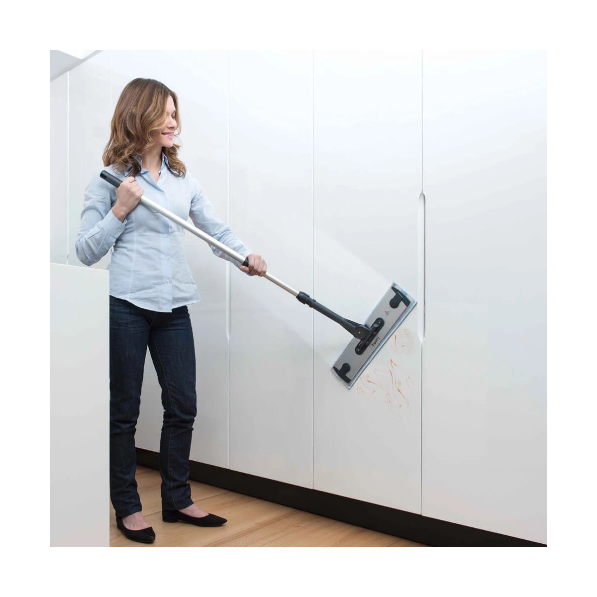 Polti Moppy ile temizlenen yüzeyler anında kurur ve su lekesi, iz ya da çizgi bırakmaz. Pürüzsüz ve parlak bir temizlik sonucu elde edersiniz.