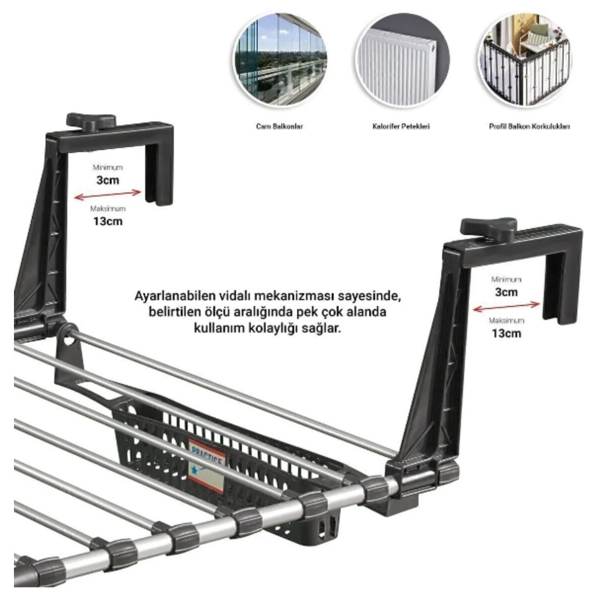 Portatif 55 cm Kurutmalık Balkon, Petek, Pencere Uyumlu Ayarlanabilir, Taşınabilir Çamaşır Askısı
