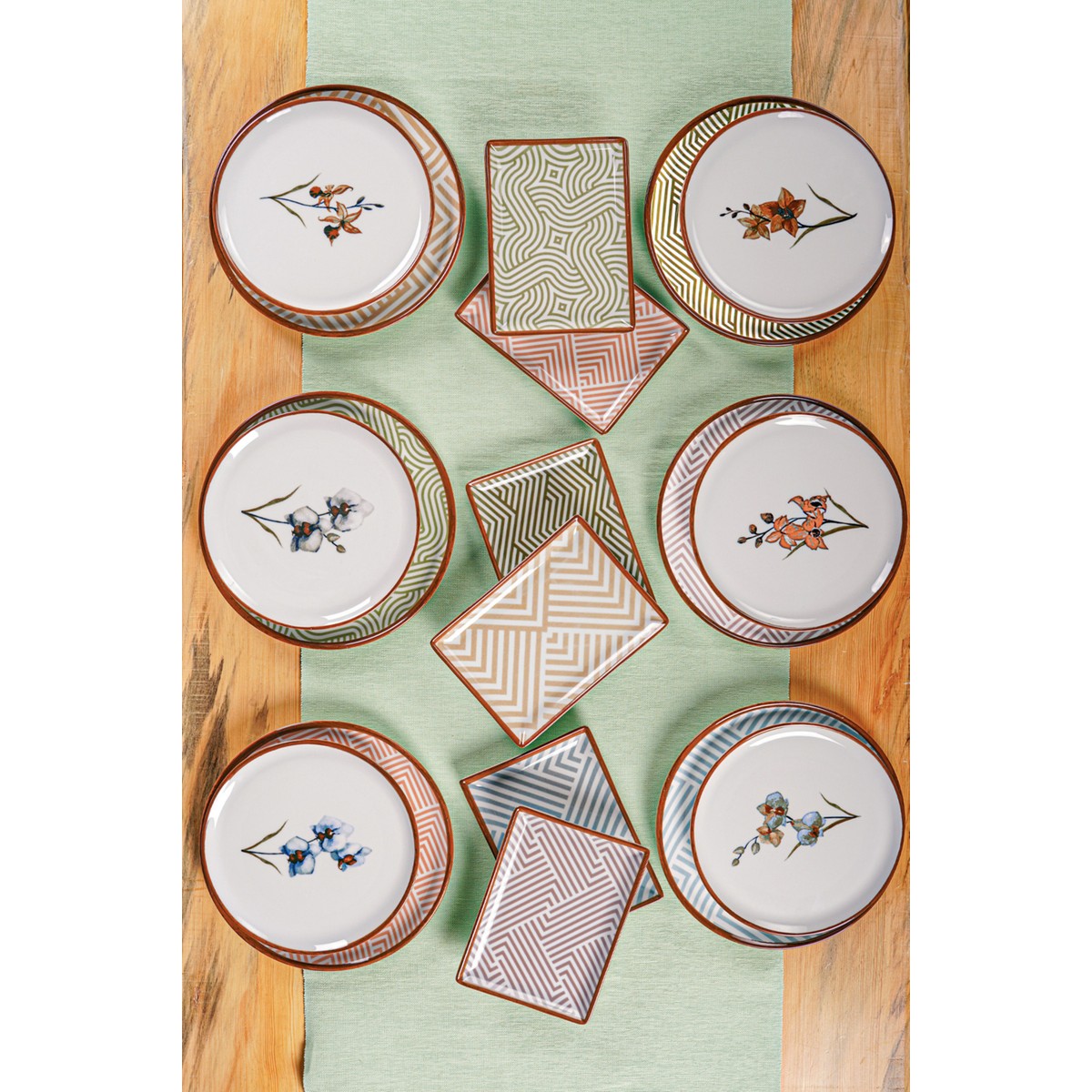 – ???? Çiçek desenli ve modern geometrik tasarım — sofralarınıza estetik bir dokunuş.