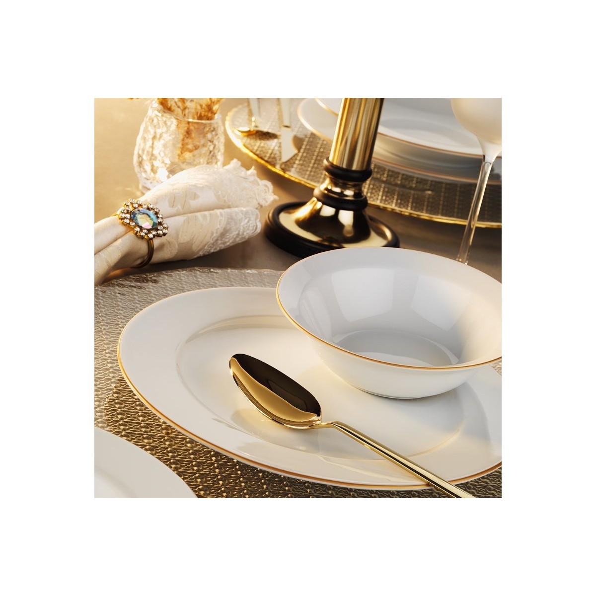 Porland Mina 56 Parça Yemek Takımı Gold Fileli: Sofranızda Zerafetin ve Lüksün Taçlandığı Anlar!