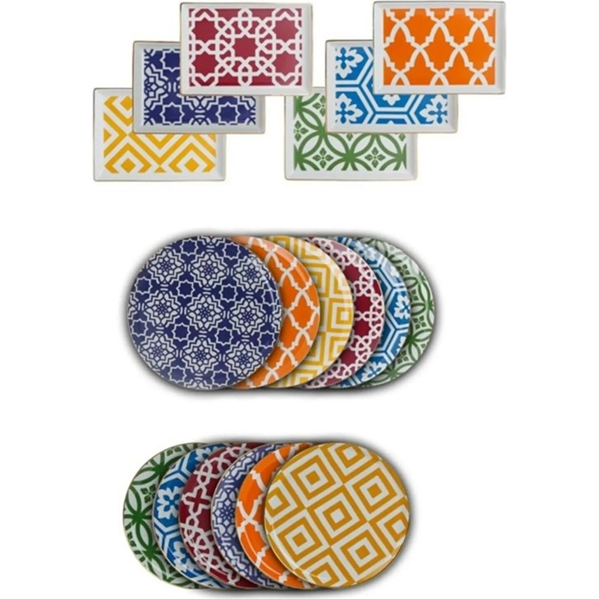 Porland Morocco 18 Parça 6 Kişilik Yuvarlak Çok Renkli Desenli Porselen Yemek Takımı