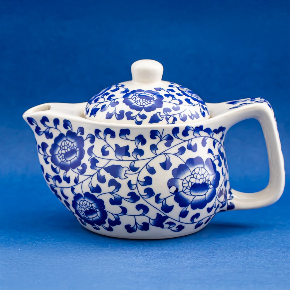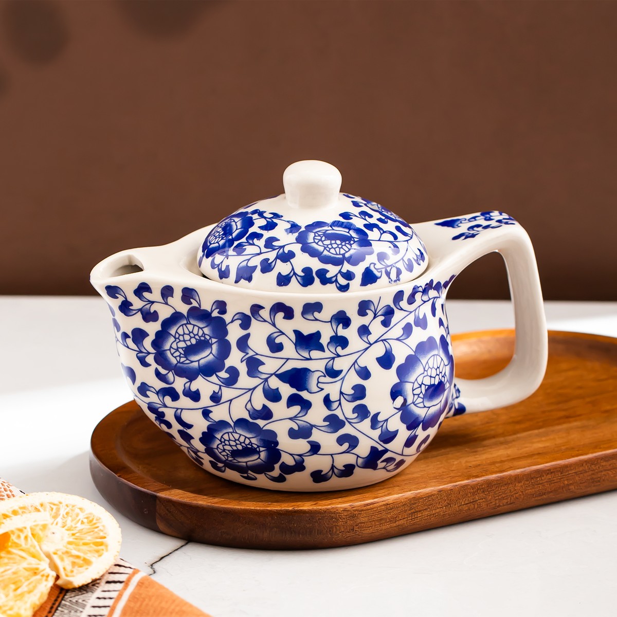 Porsima Dem-133-6 Porselen Bitki Çayı Demliği Lacivert Detaylı Desenli Tek Demlik 400 ml