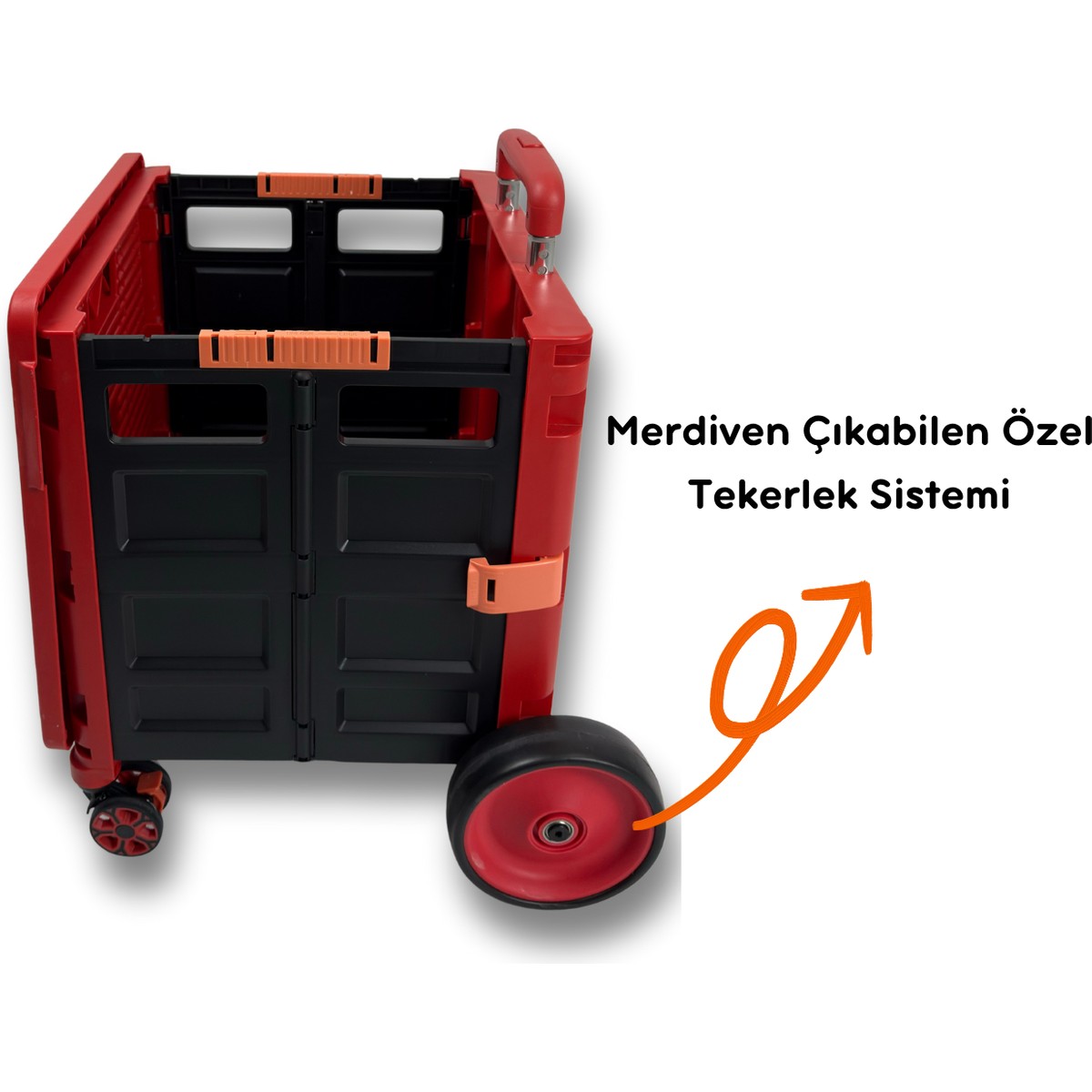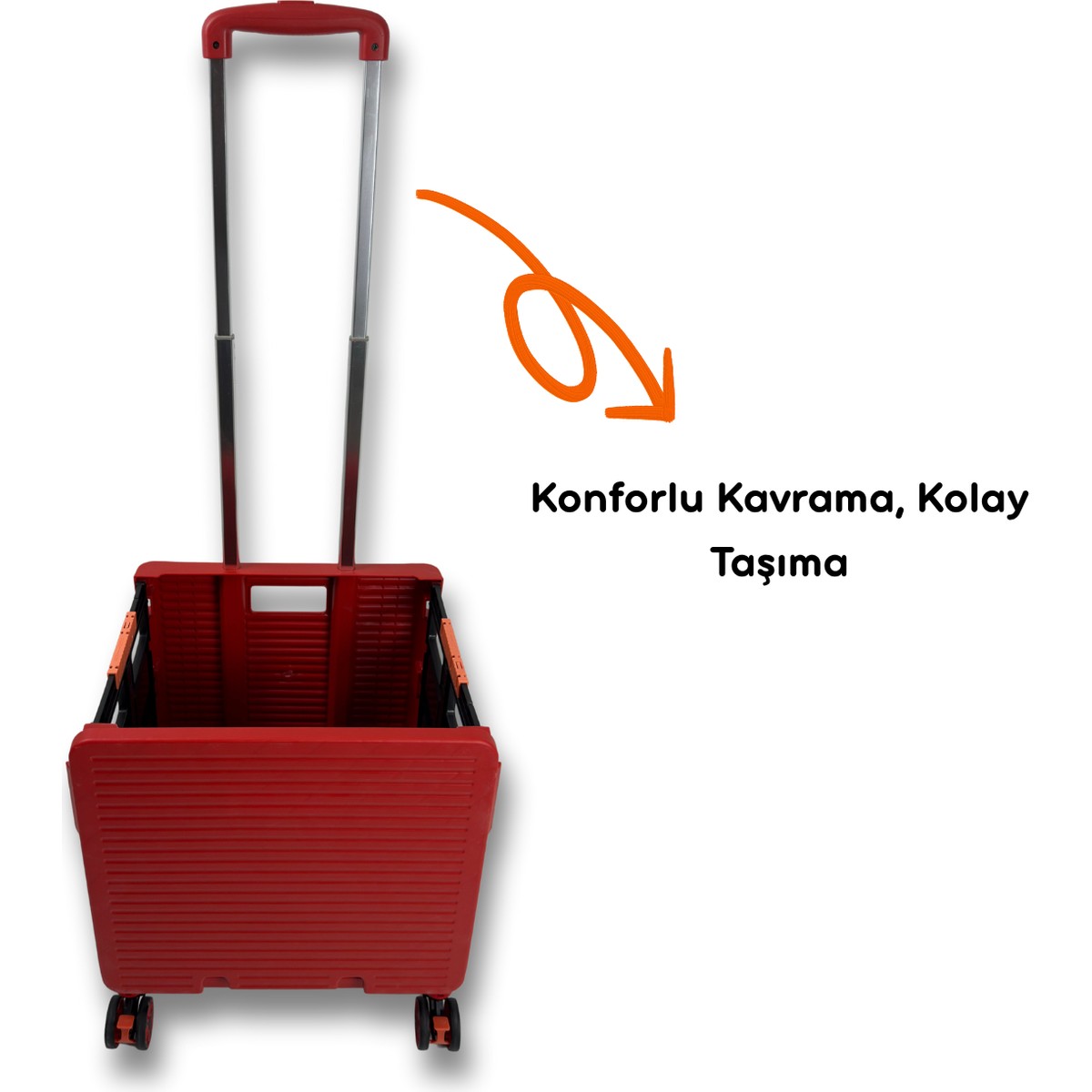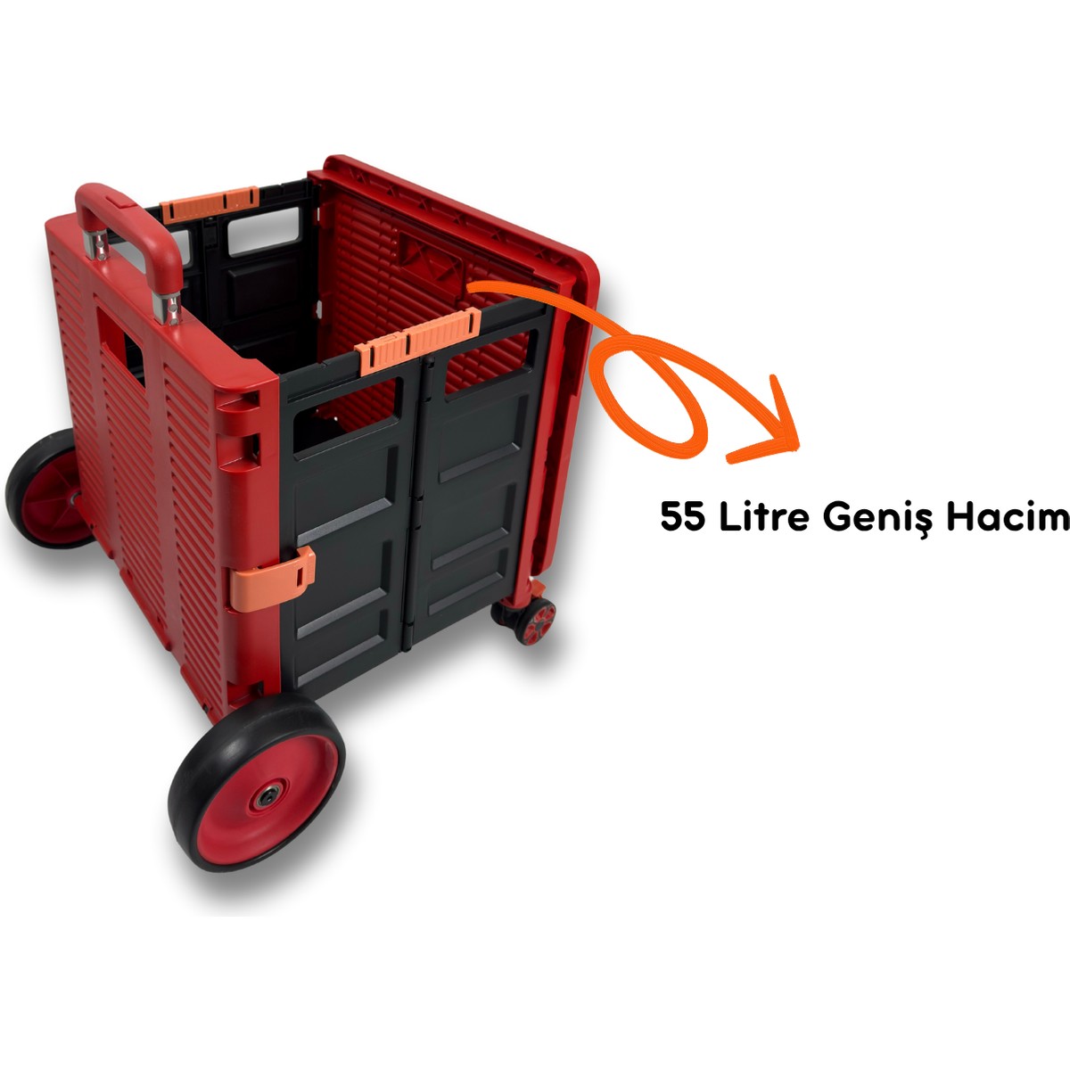 Portakap 4 Büyük Tekerlekli, 55 Litre Kırmızı Katlanır Alışveriş Arabası