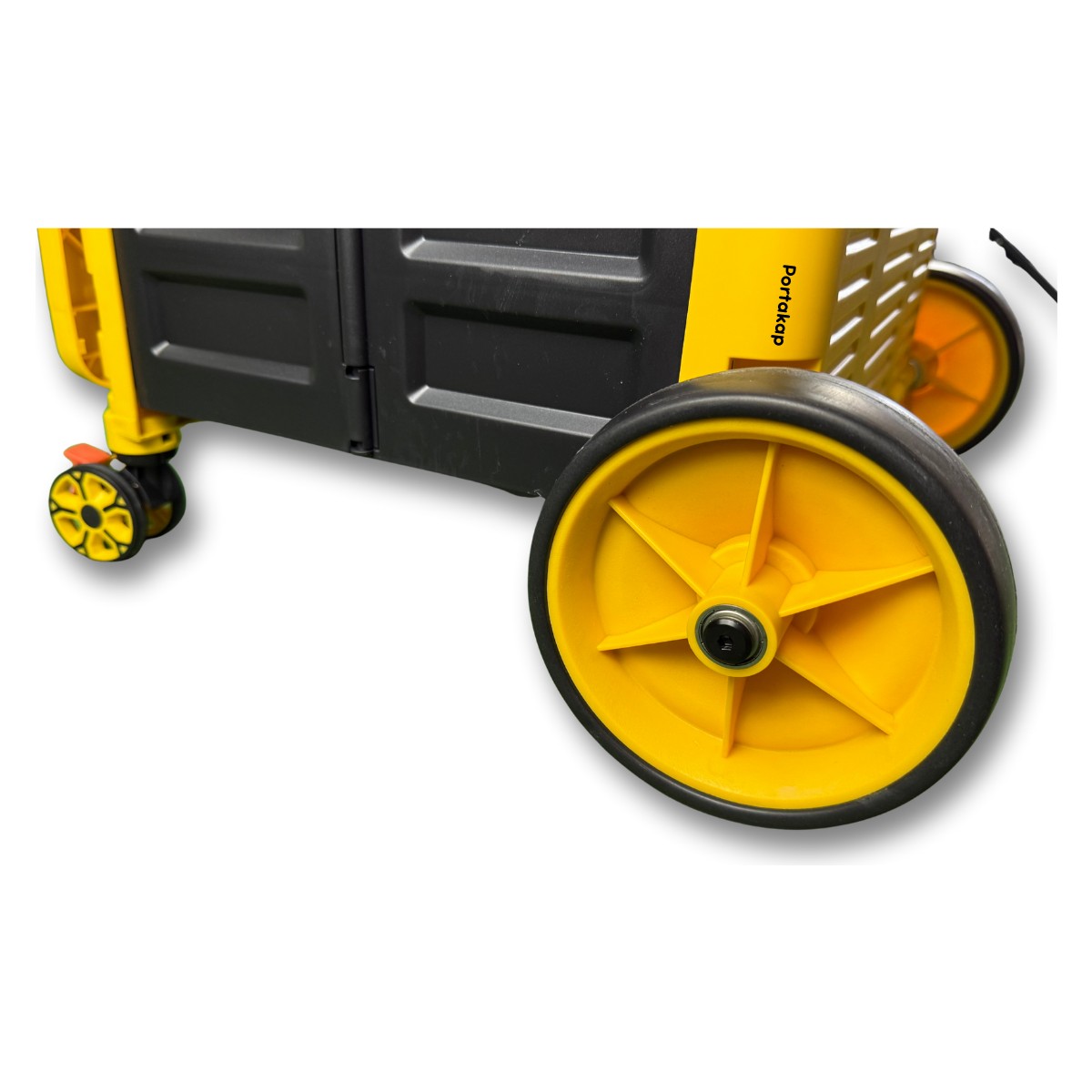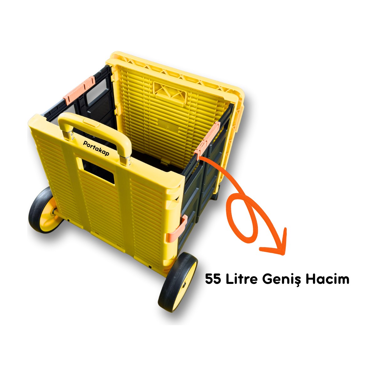 Portakap 4 Büyük Tekerlekli, Merdiven Çıkabilir, 40 kg Taşıma Kapasiteli, 55 Litre Sarı Katlanır Alışveriş Arabası