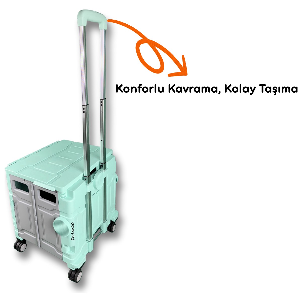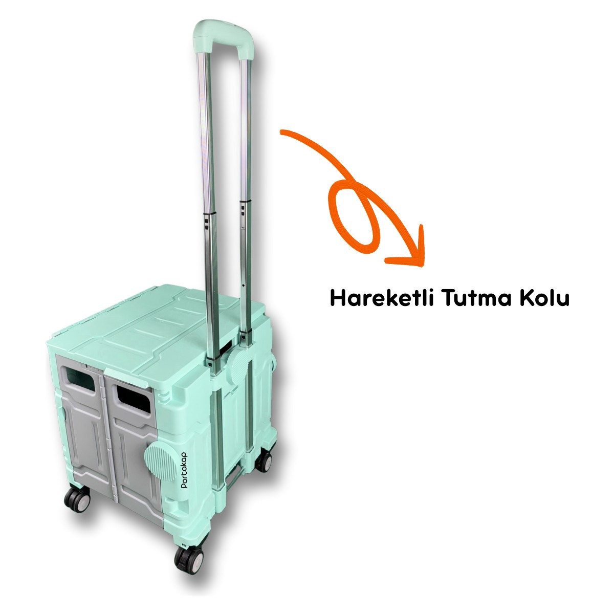 Portakap 4 Tekerlekli Yeşil, 38L Orta Boy, Hareketli Alüminyum Tutacaklı Alışveriş Arabası – 55MM. Büyük Tekerlekli