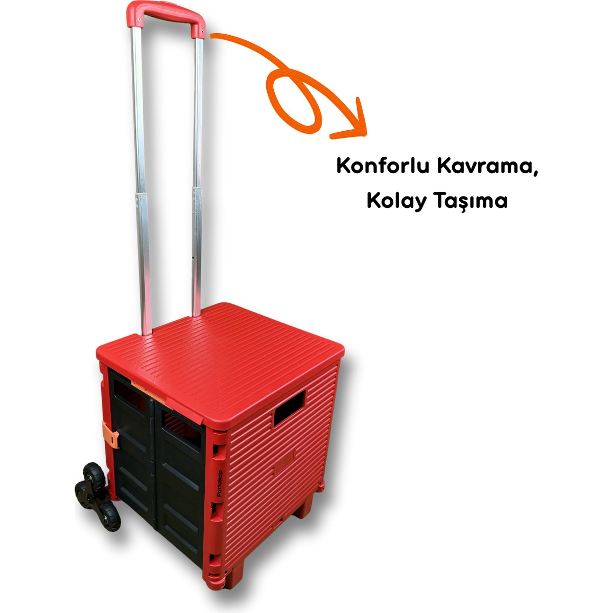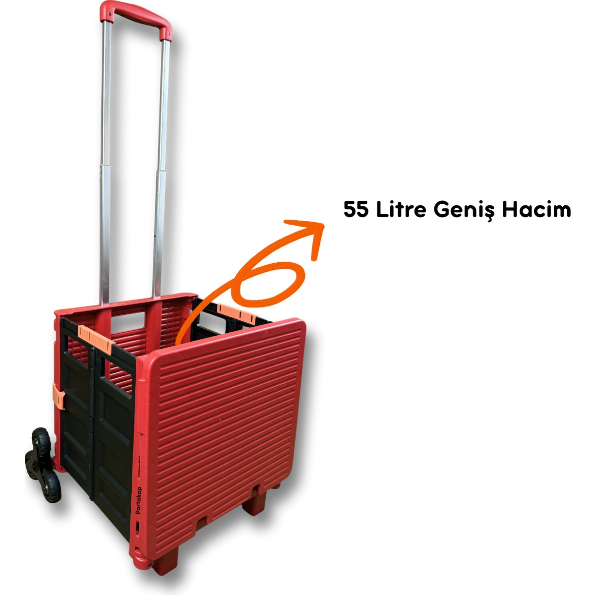 Portakap 6 Tekerlekli, 55 Litre Kırmızı Katlanır Alışveriş Arabası