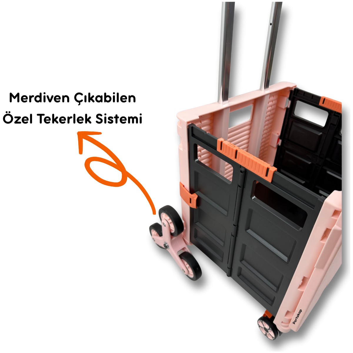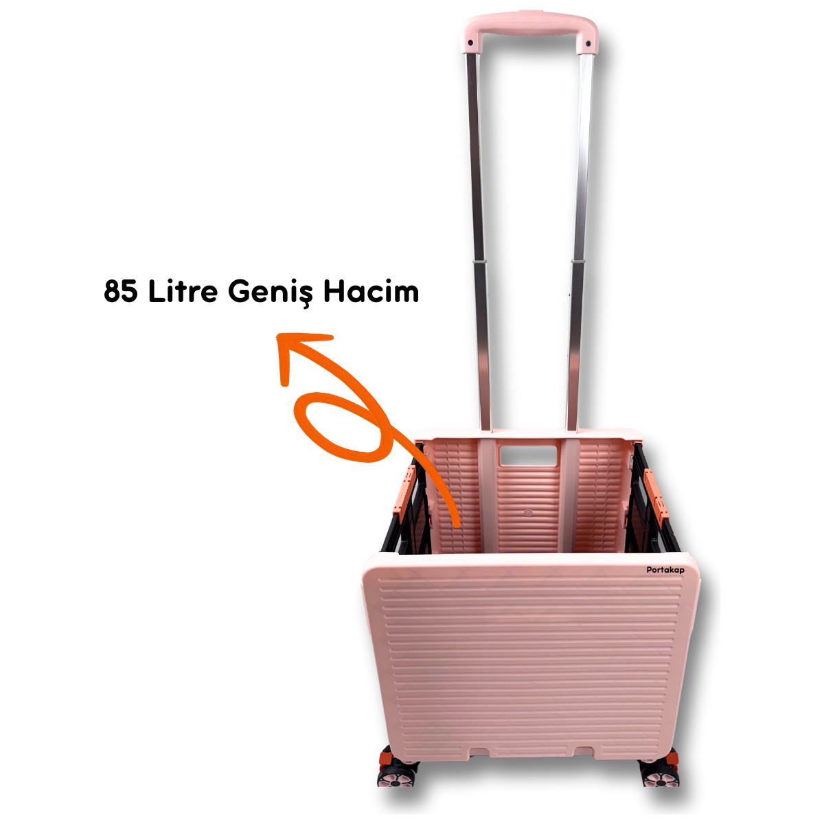 Portakap 8 Tekerlekli, 55 Litre Pembe Katlanır Alışveriş Arabası