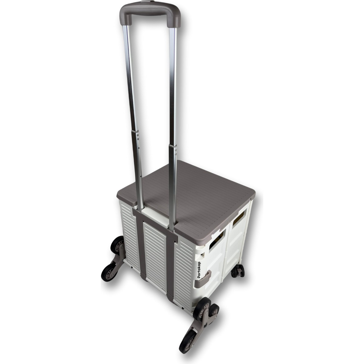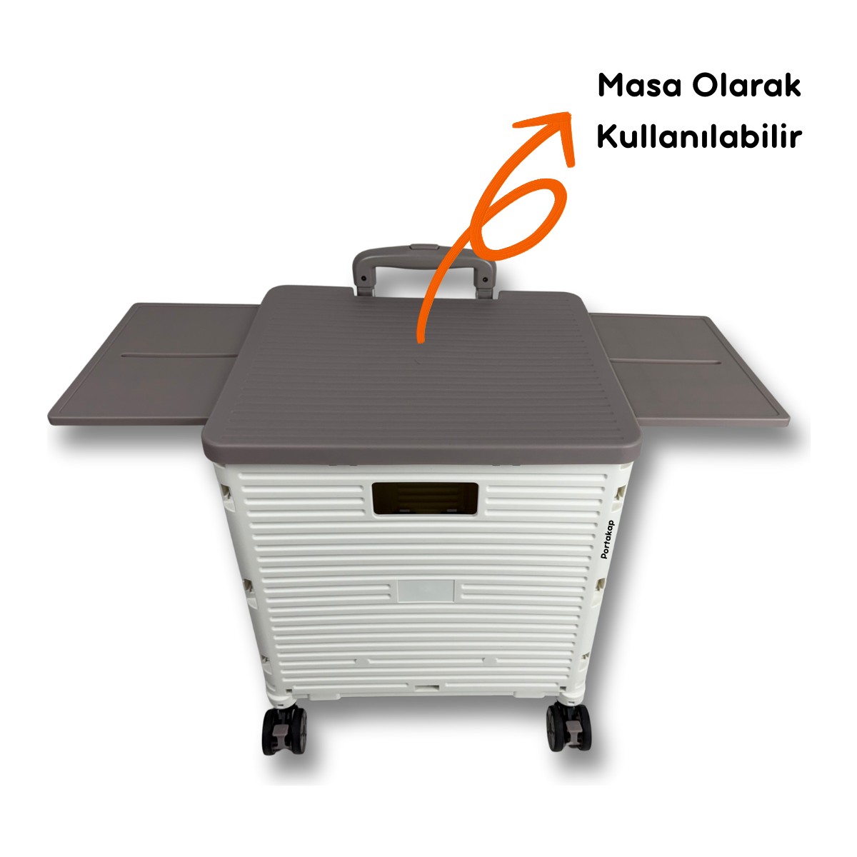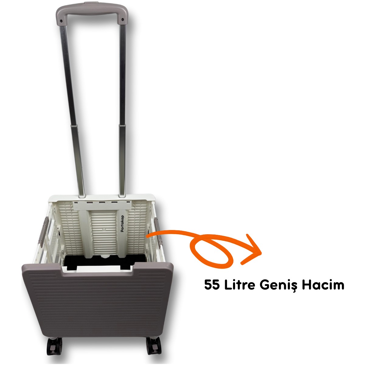 Portakap Piknik Masalı, 8 Tekerlekli, 55 Litre Beyaz ve Kahverengi Katlanır Alışveriş Arabası – Merdiven Çıkan