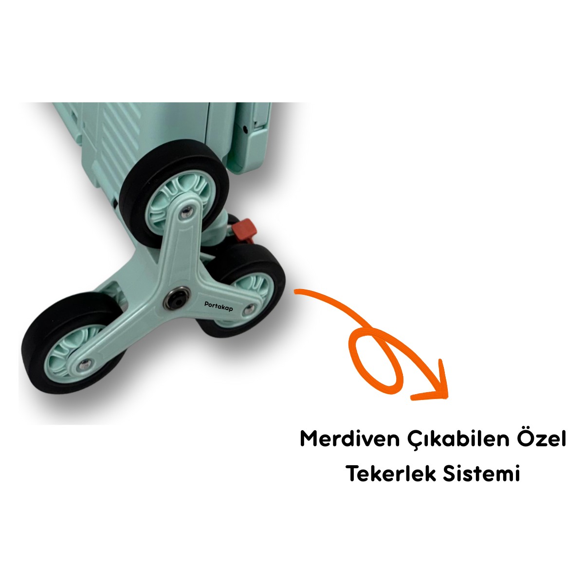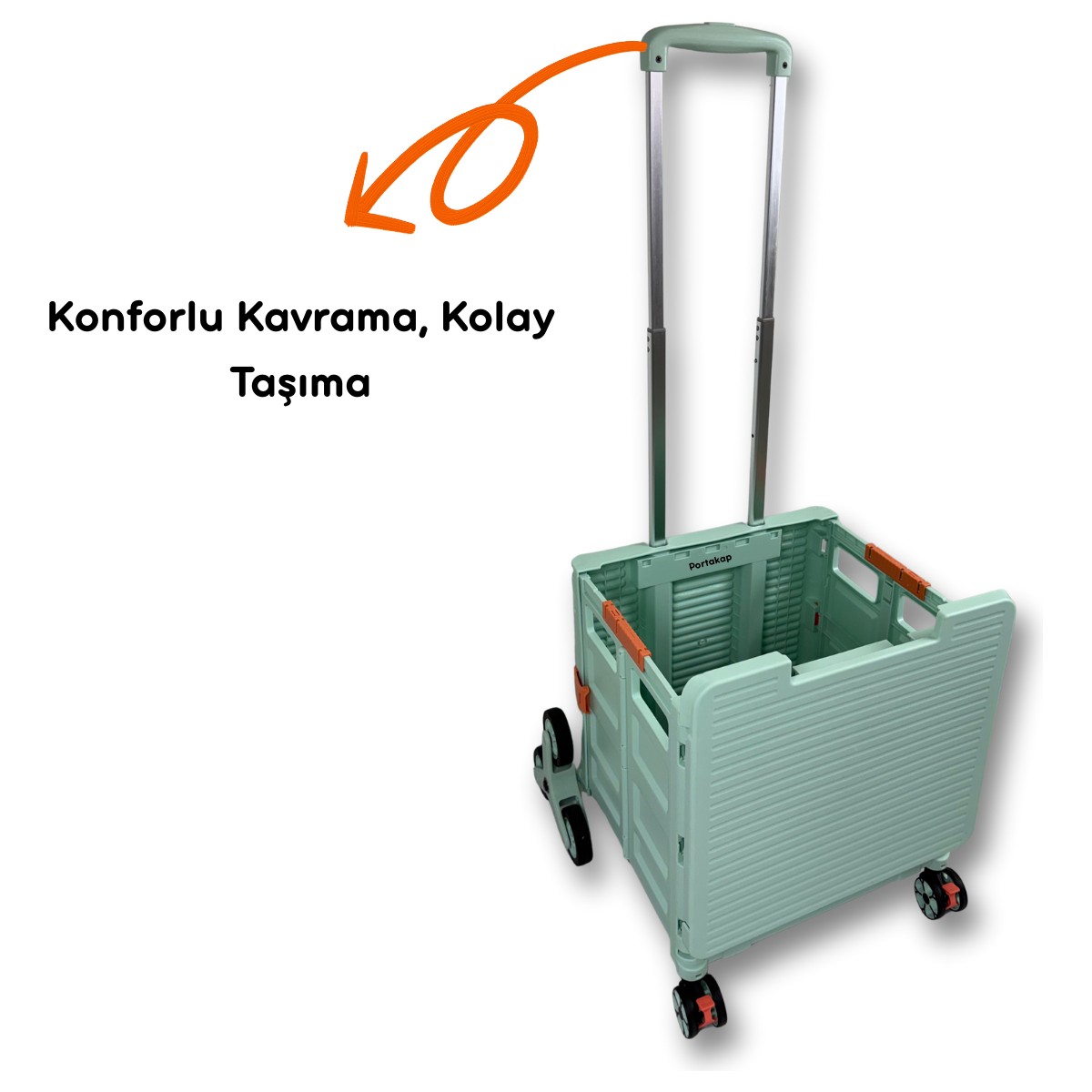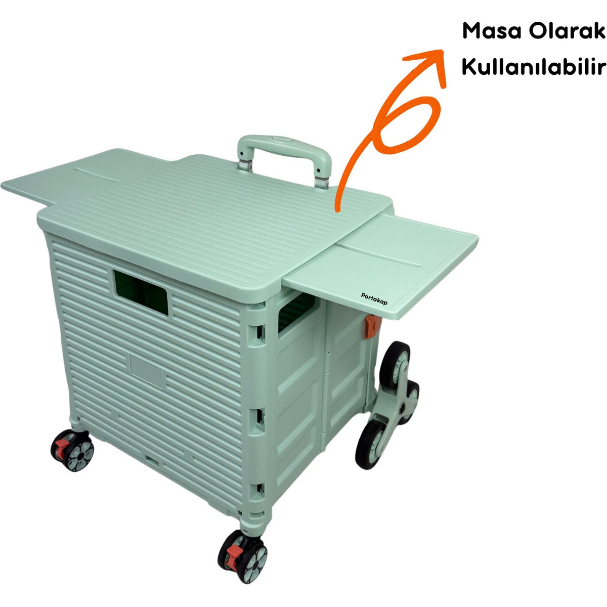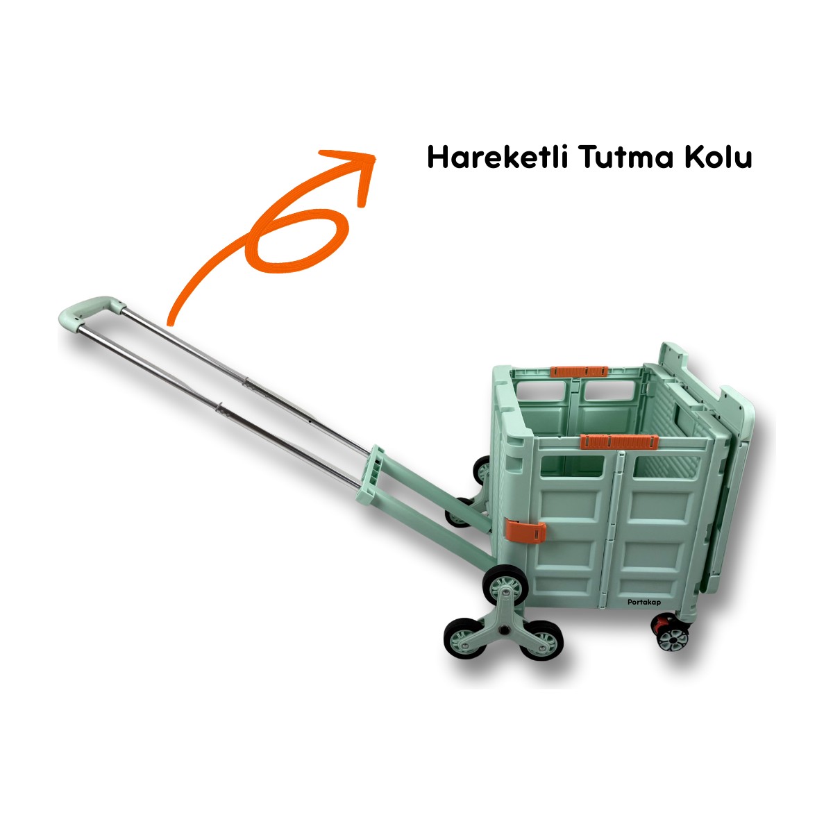 Portakap Piknik Masalı, 8 Tekerlekli, 55 Litre Yeşil Katlanır Alışveriş Arabası – Merdiven Çıkan