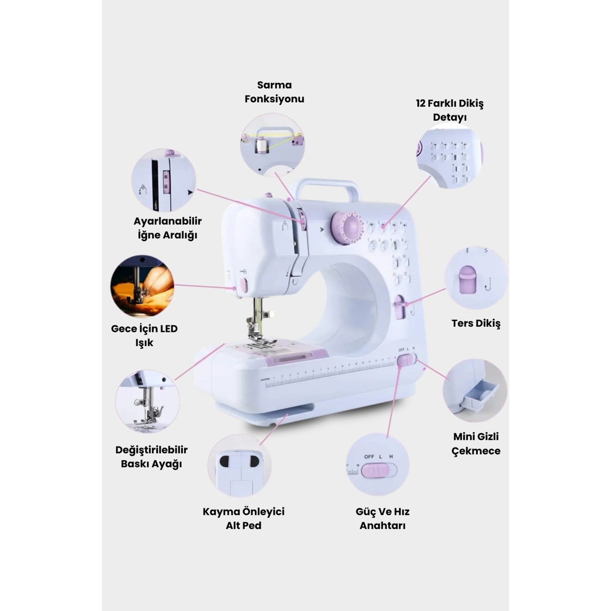 Post Alley Çok Fonksiyonlu 12 Fonksiyonlu Profesyonel Dikiş Makinesi Dikiş Çantalı