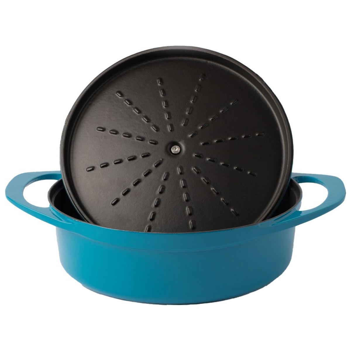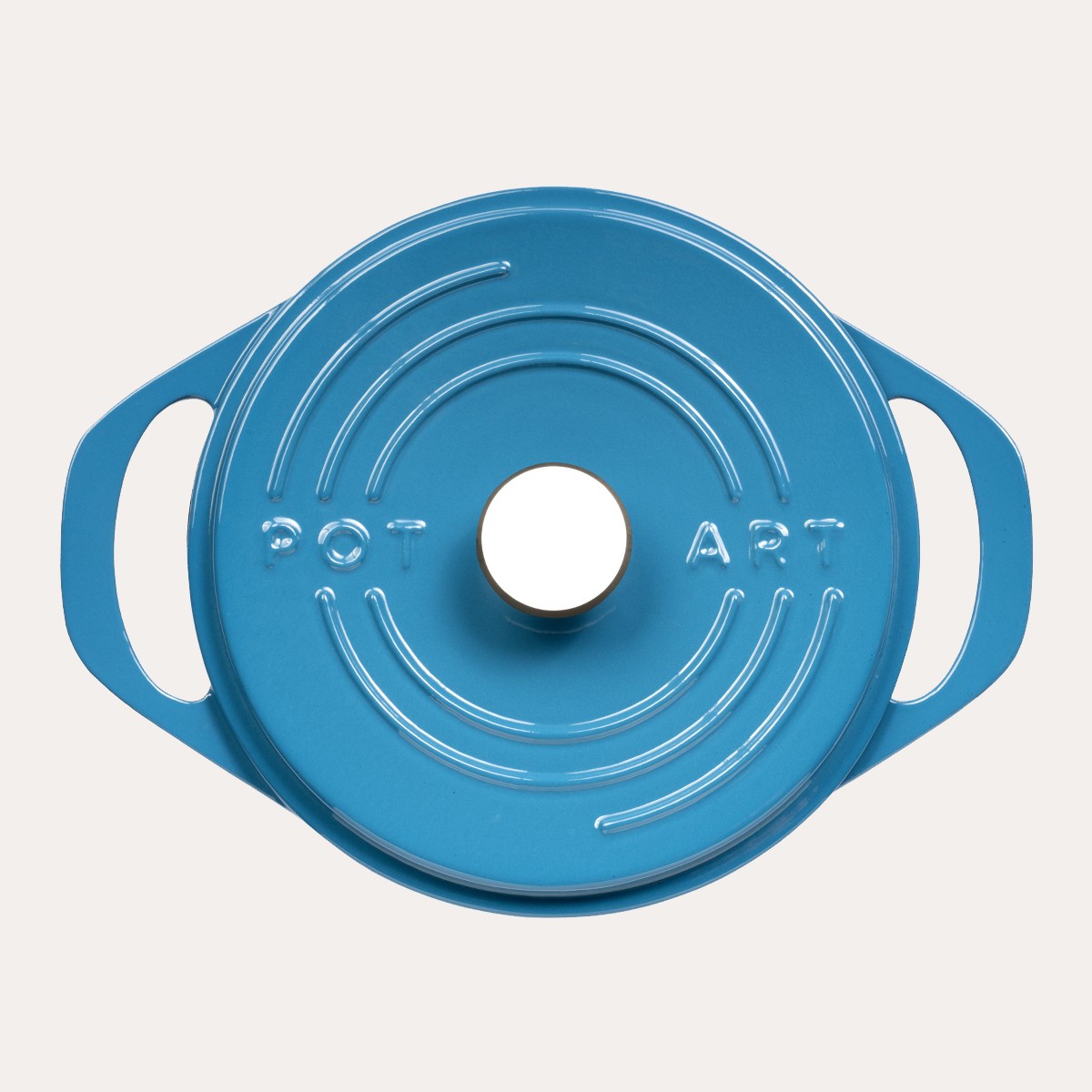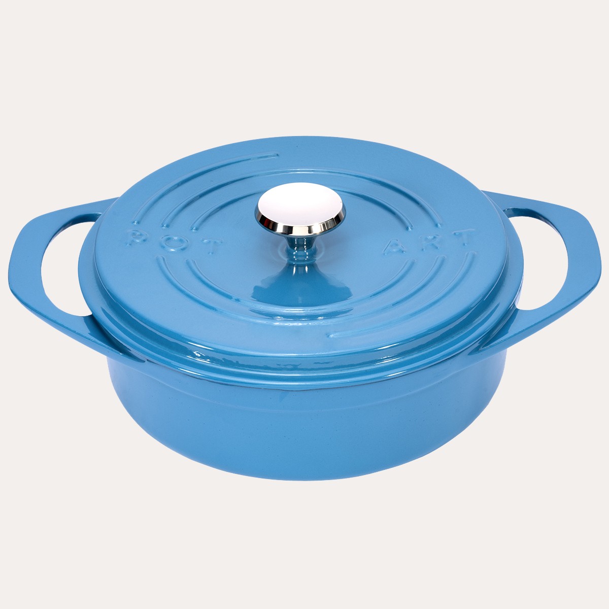 POT ART Fonksiyonel Kapaklı Mavi Sığ Döküm Tencere 26 cm