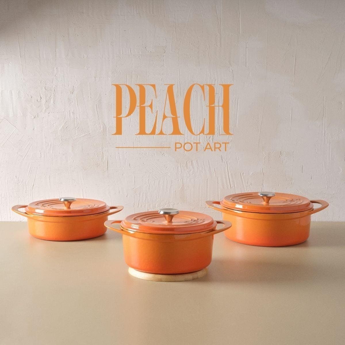 Pot Art Fonksiyonel Kapaklı Peach Turuncu Derin Döküm Tencere 24 cm