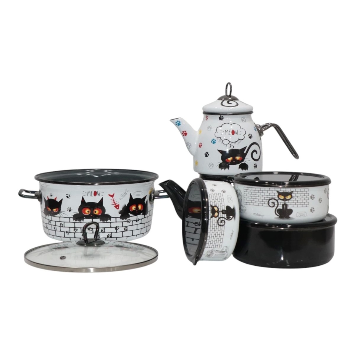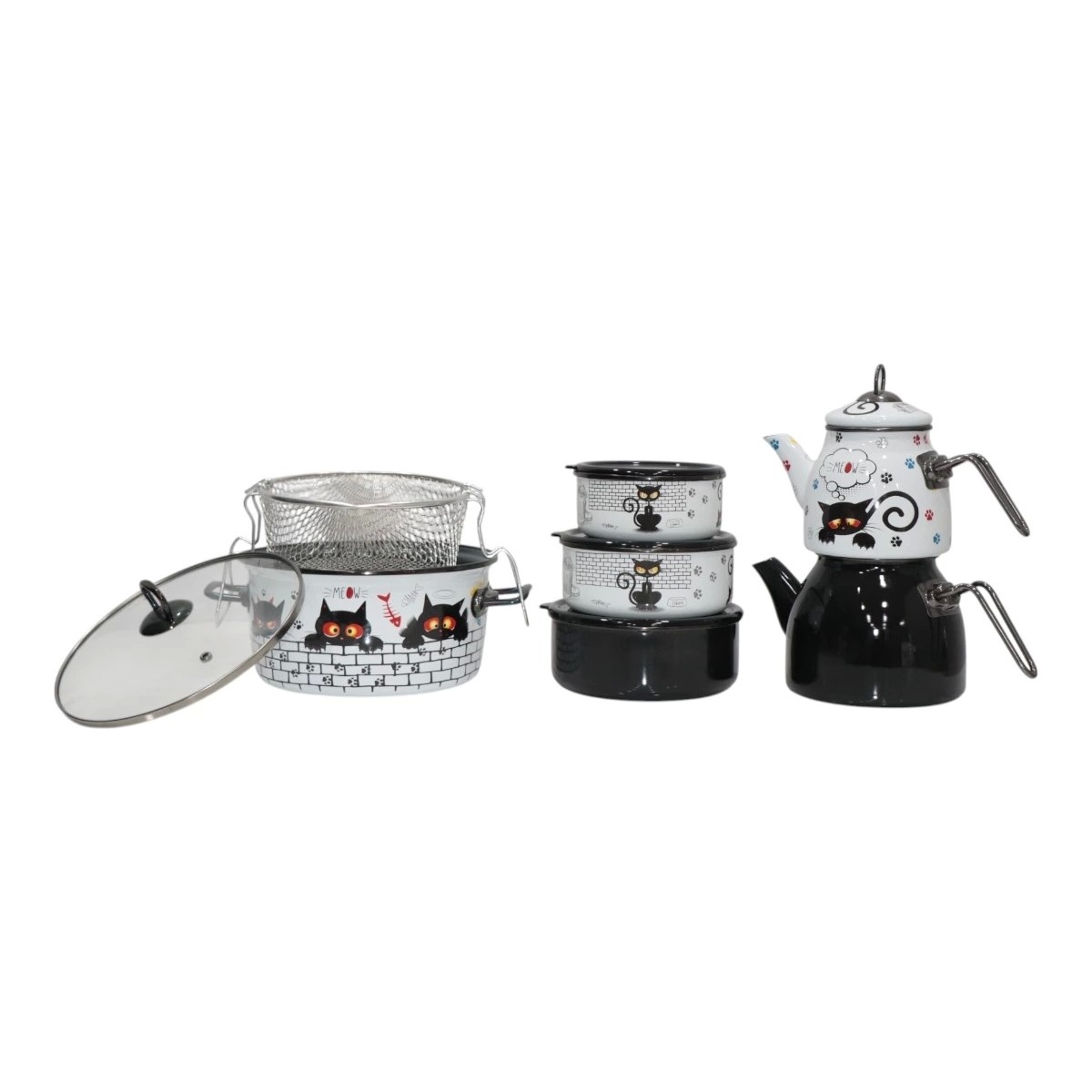 Pr Home Cat Çeyiz Seti Çaydanlık – Kızartma Tenceresi – Saklama Kabı