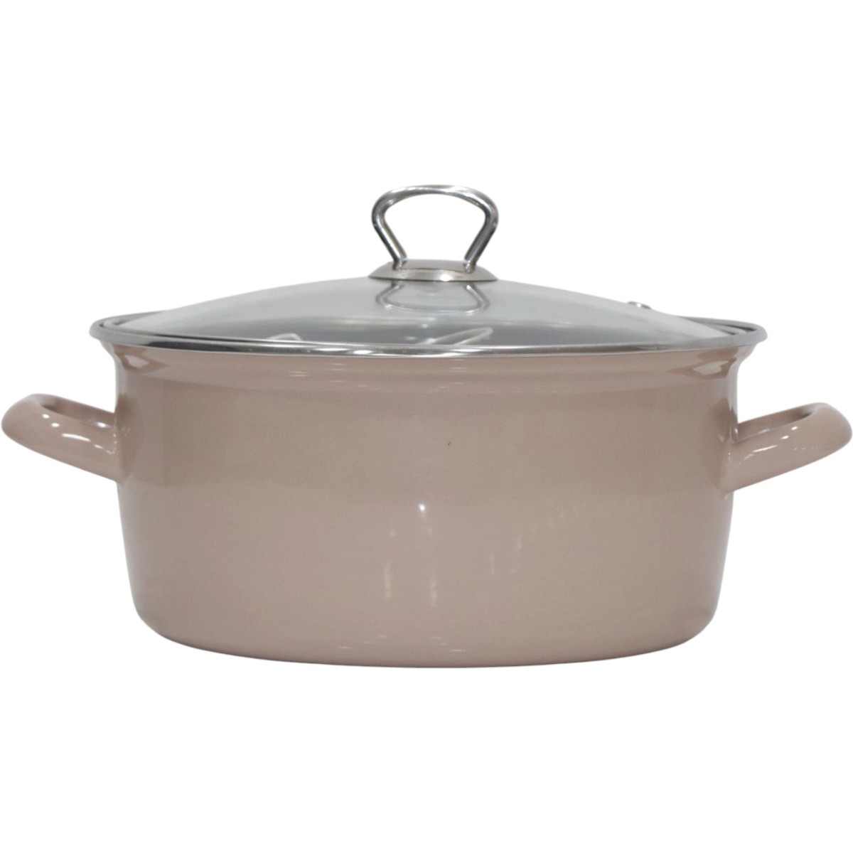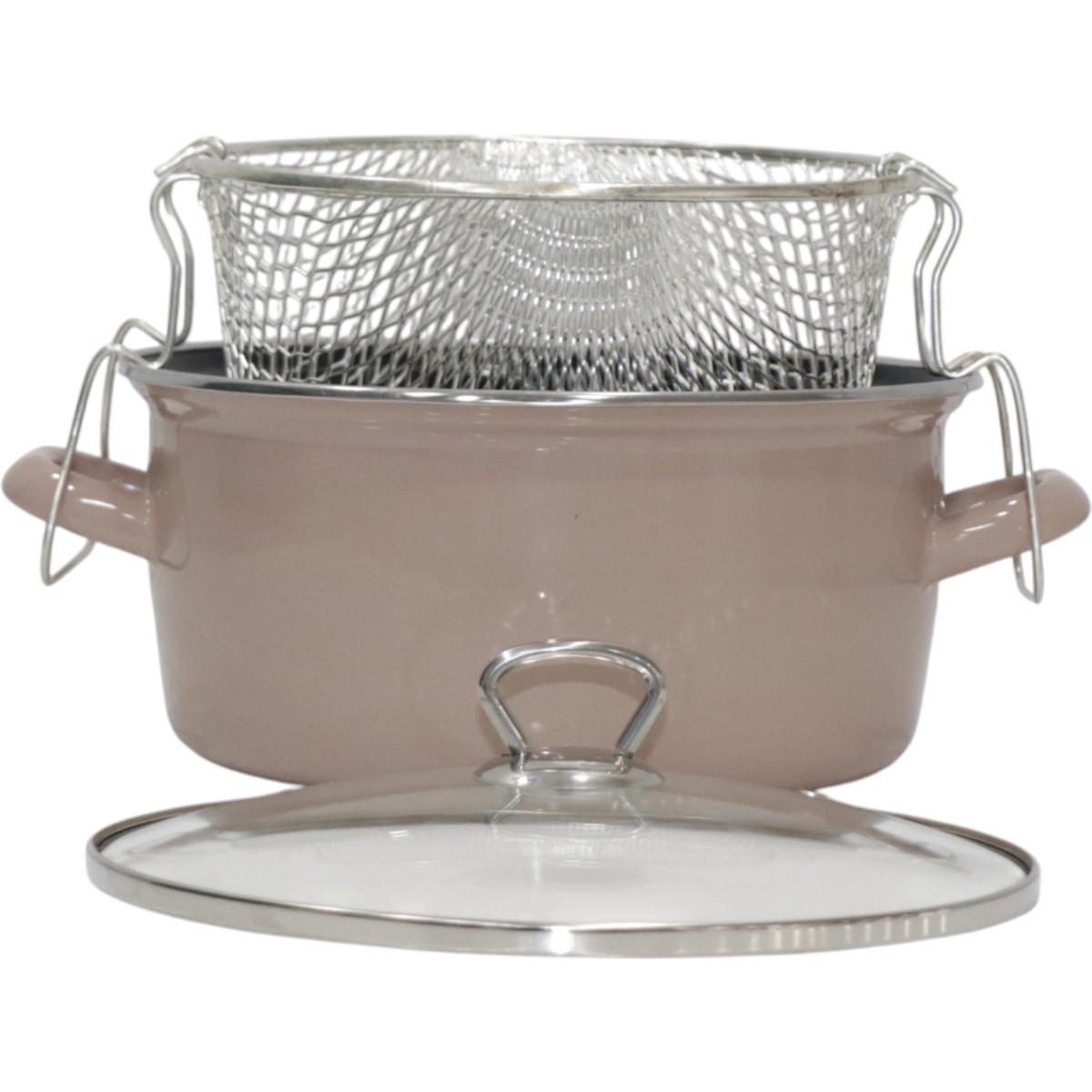 Pr Home Emaye Cam Kapaklı Kızartma Tenceresi 24 cm Açık Kahverengi Krom Tepeli