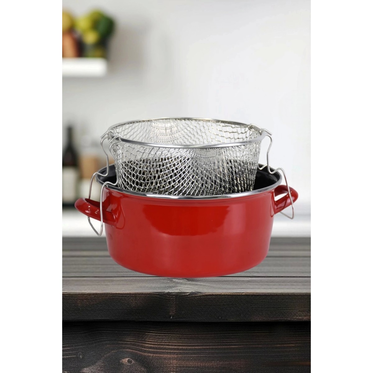 Set İçeriği: Emaye Kızartma Tenceresi 1 Adet, Kızartma Teli 1 Adet, Cam kapak 1 Adet