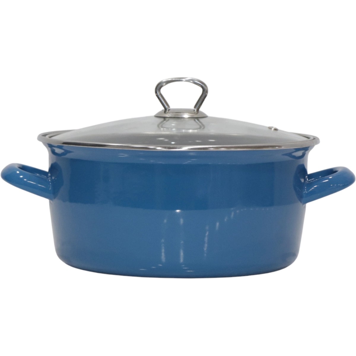 Pr Home Emaye Cam Kapaklı Kızartma Tenceresi 24 cm Mavi Krom Tepeli