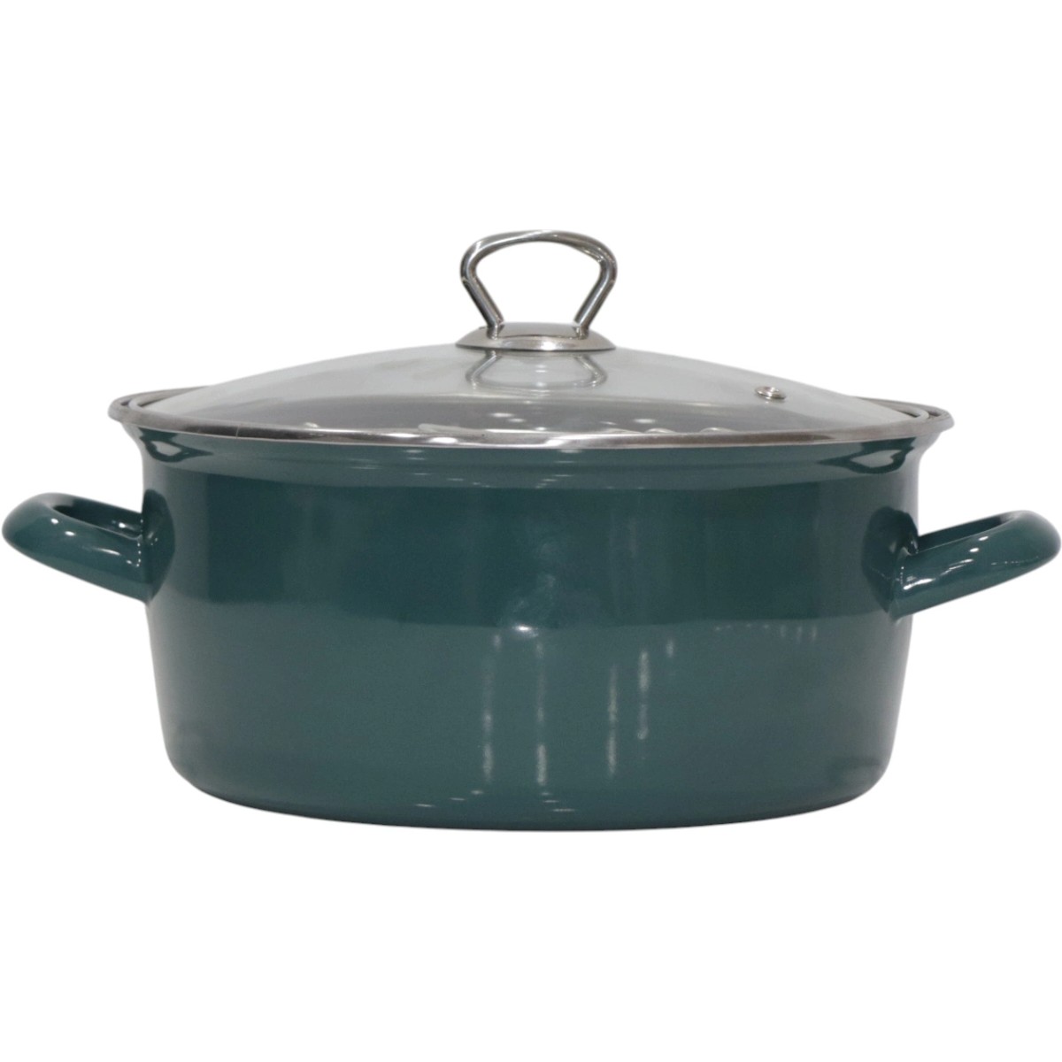 Pr Home Emaye Cam Kapaklı Kızartma Tenceresi 24 cm Petrol Yeşili Krom Tepeli