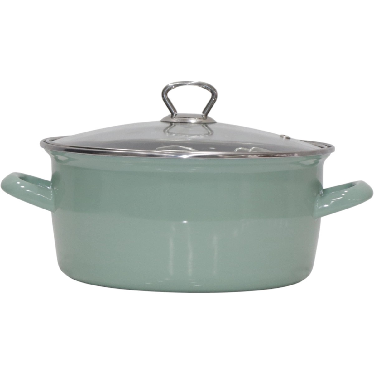 Pr Home Emaye Cam Kapaklı Kızartma Tenceresi 24 cm Soft Yeşil Krom Tepeli