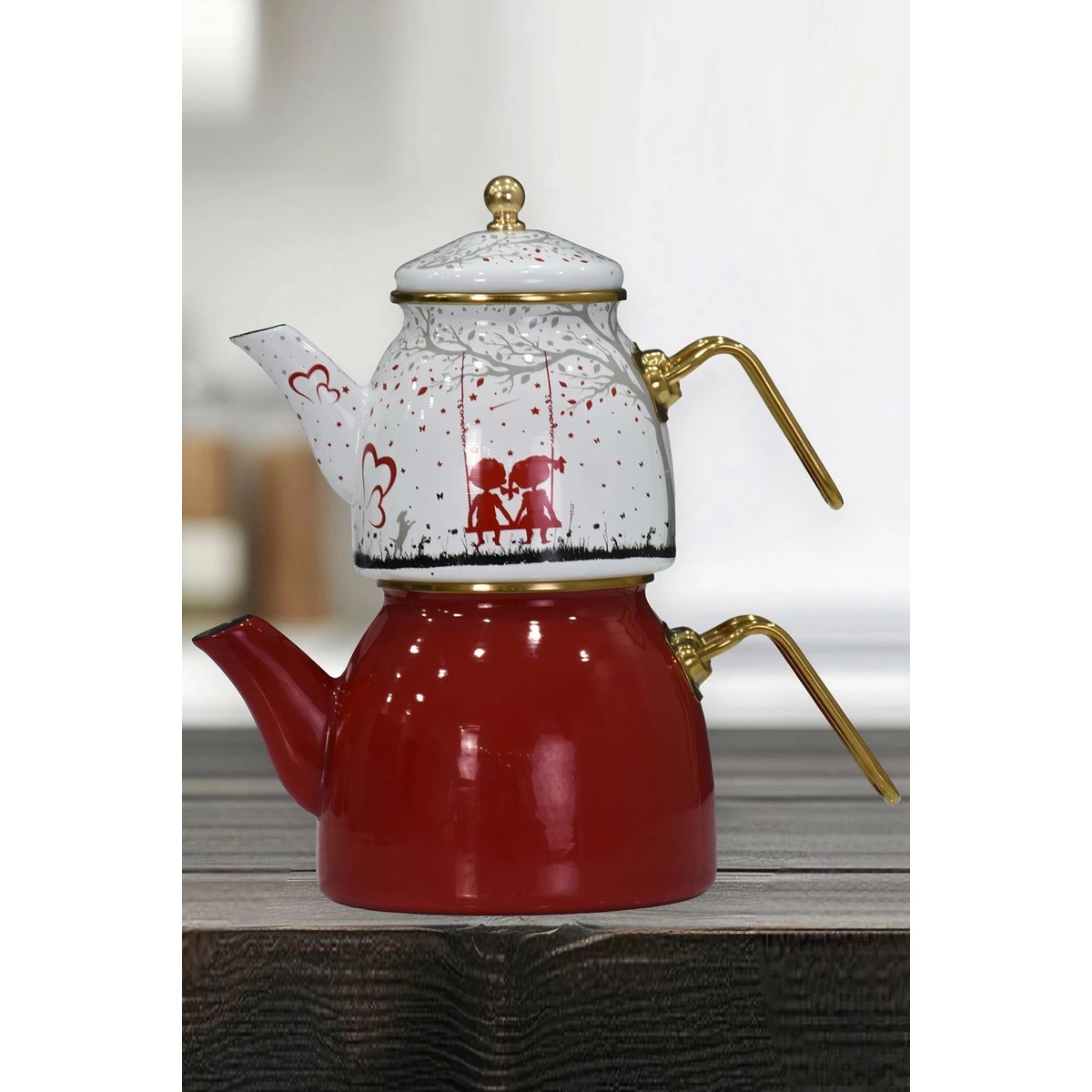 Set İçeriği: Dekorlu Çaydanlık Alt 1 Adet, Dekorlu Çaydanlık Üst 1 Adet, Dekorlu Tepeli Emaye Çaydanlık Kapağı 1 Adet.