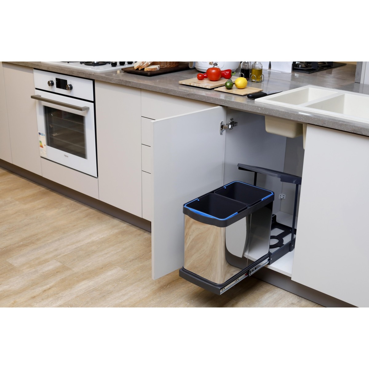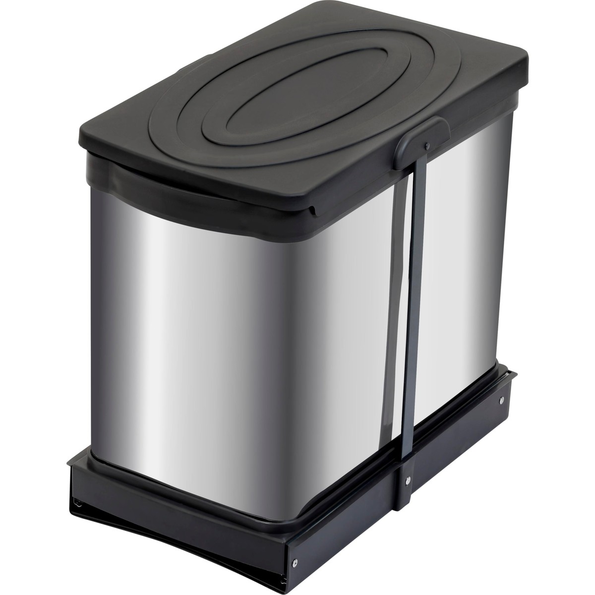 Pyramith 12+12 Litre Antrasit Teleskopik Raylı Paslanmaz Çöp Kovası (P-9456)