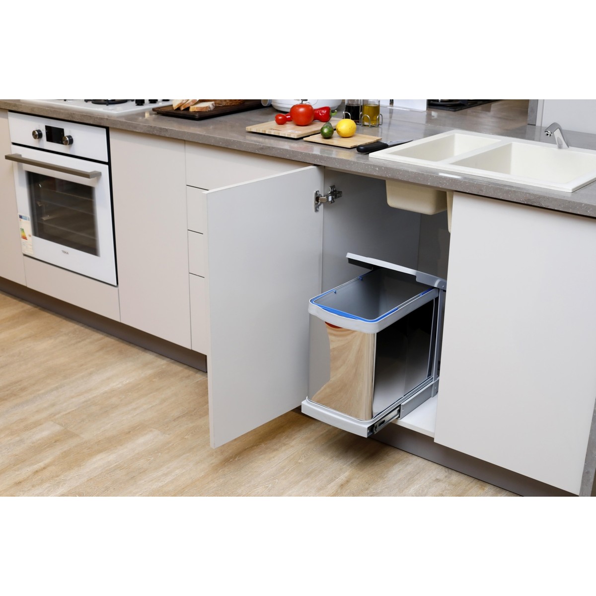 Pyramith 24 Litre Gri Teleskopik Raylı Paslanmaz Çöp Kovası (P-9453)