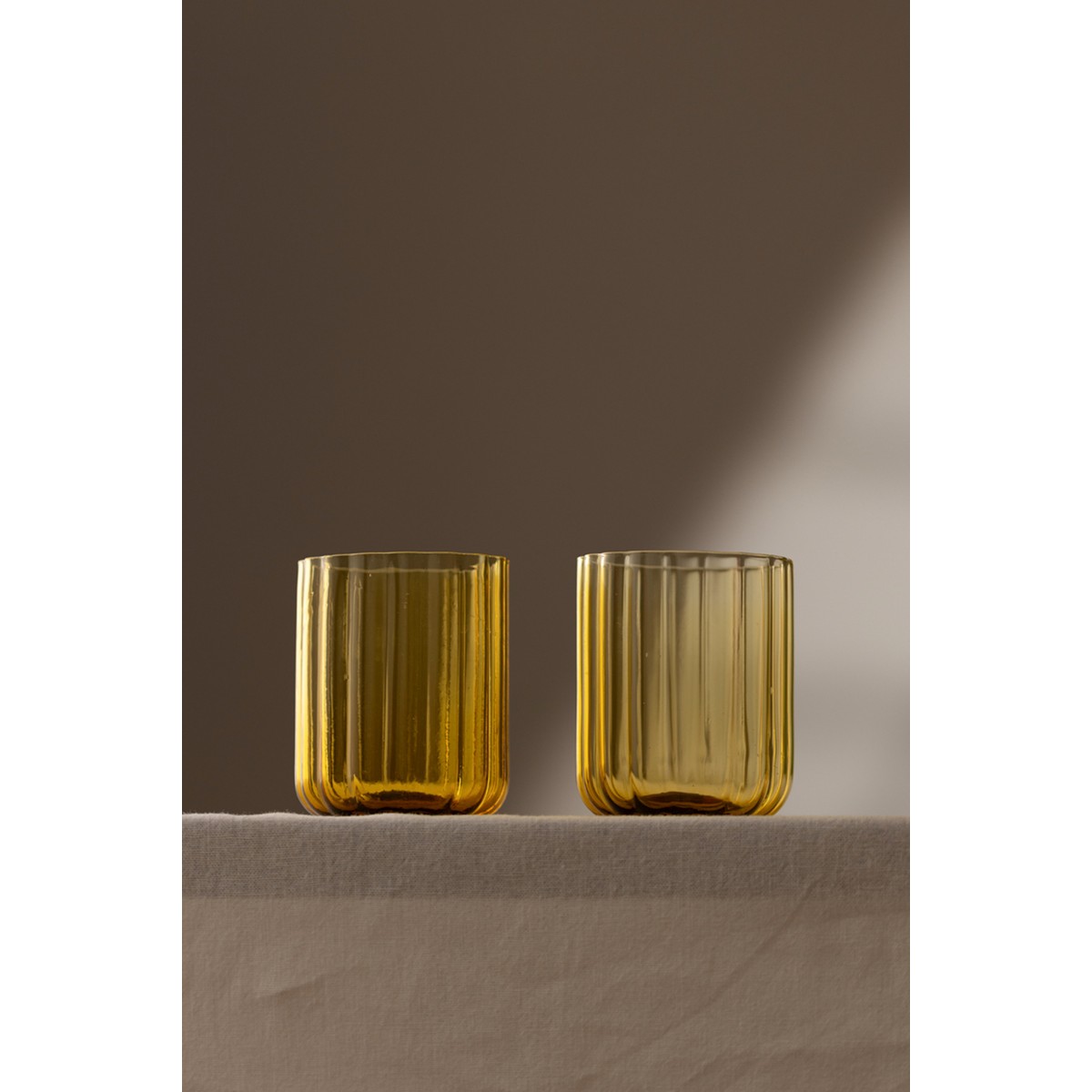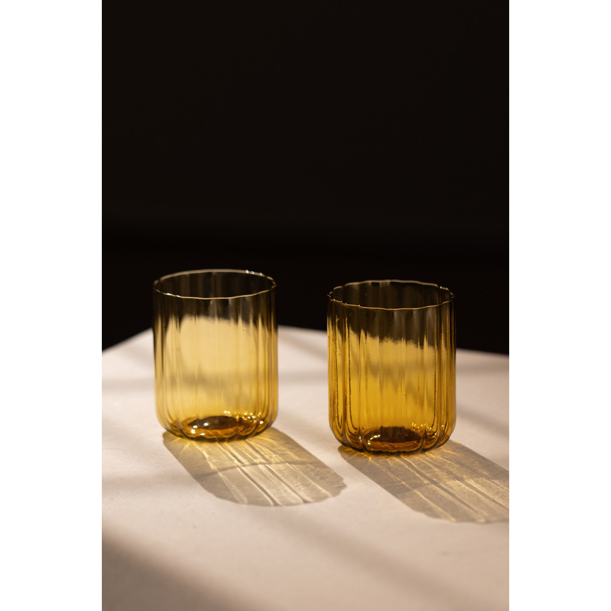 Flower El Yapımı Kendinden Renkli 2’li Su Bardağı Seti Amber 450 cc