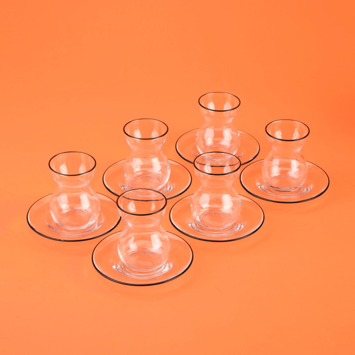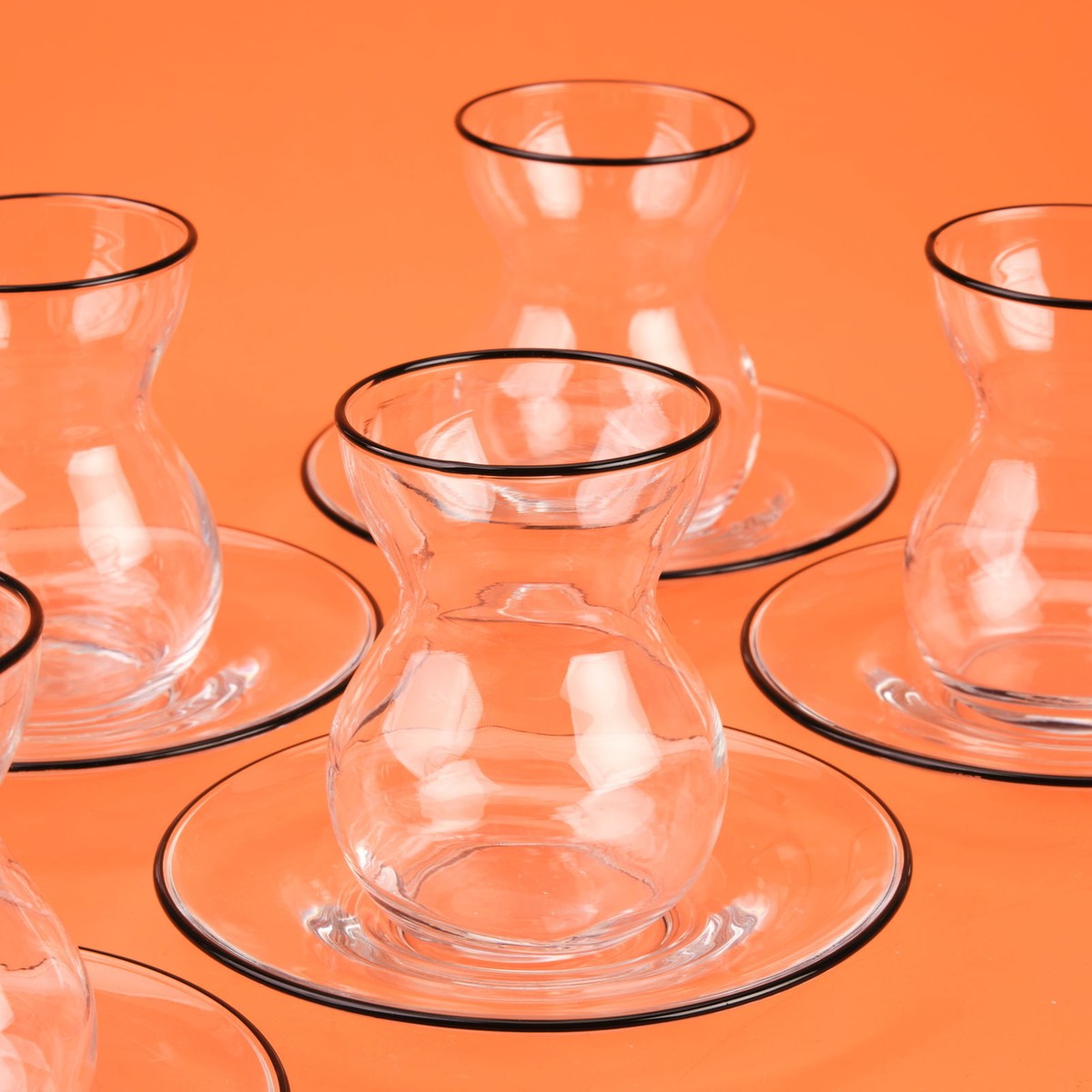 Pure Siyah Rimli 12 Parça Çay Bardak Takımı – Şeffaf / Siyah