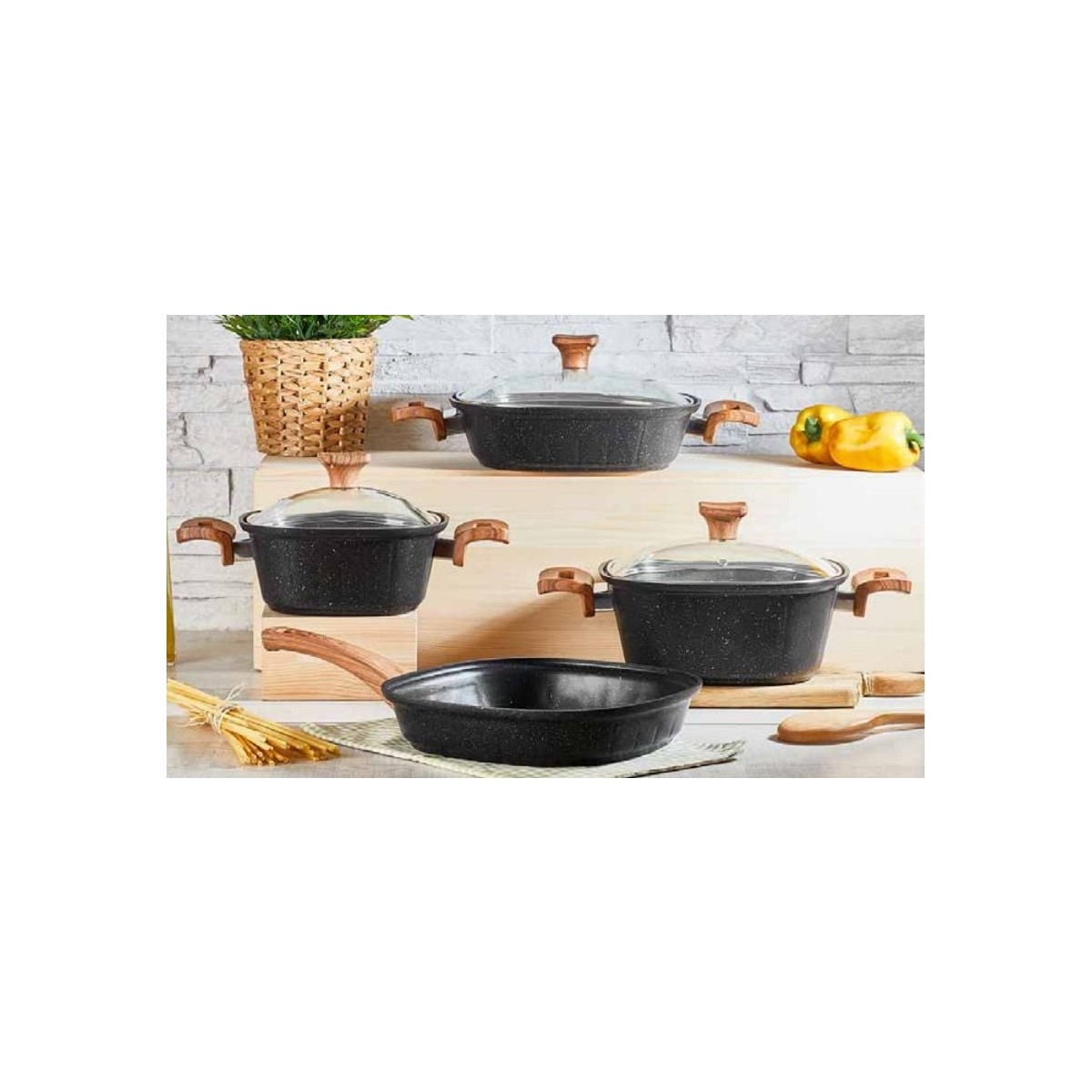 Rematta Granit Gia Kare 7 Parça Tencere Seti Siyah