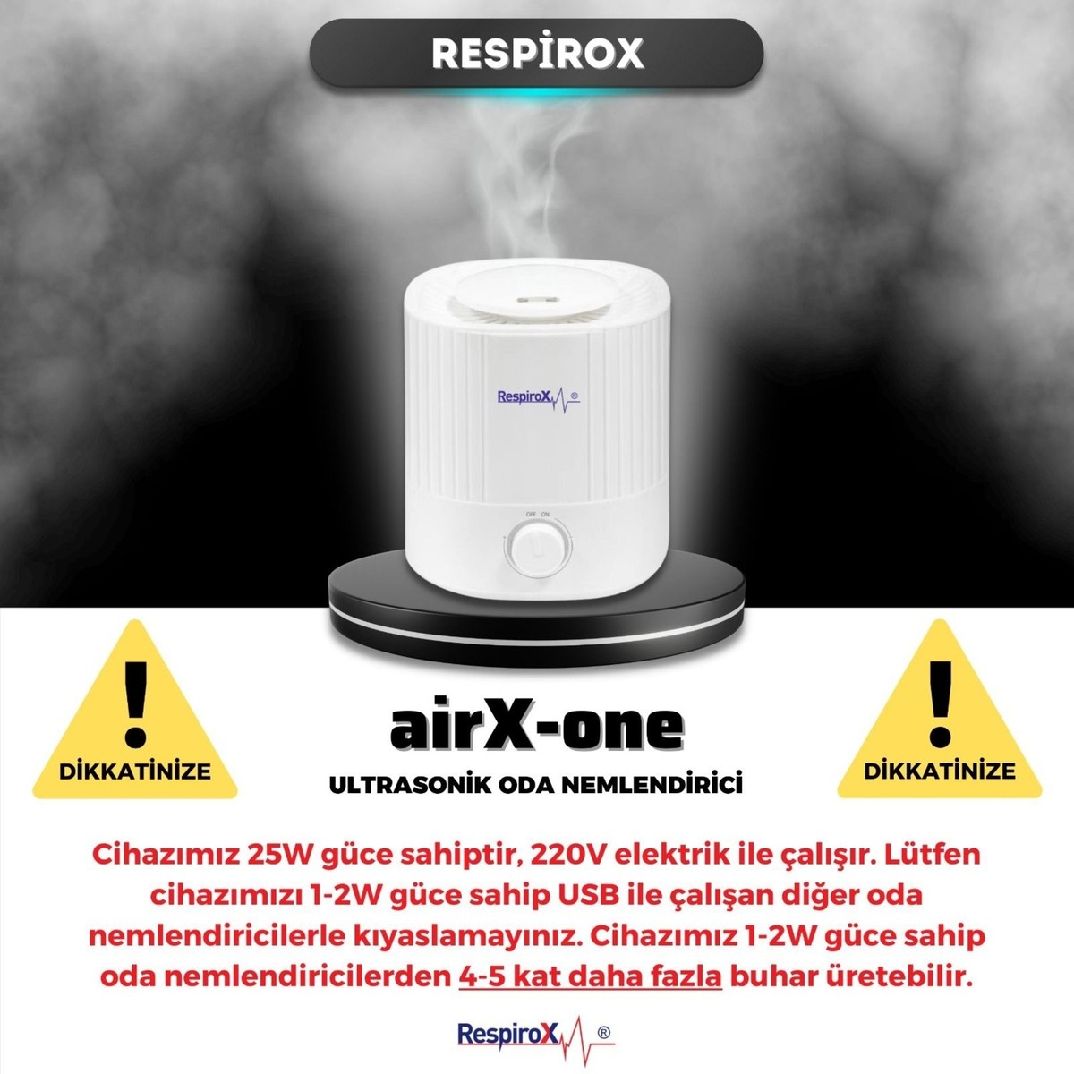 RESPİROX AİRX-ONE ULTRASONİK SOĞUK BUHAR MAKİNESİ ODA NEMLENDİRİCİ 2.5Lt. Tank Kapasitesi (Su haznesi)