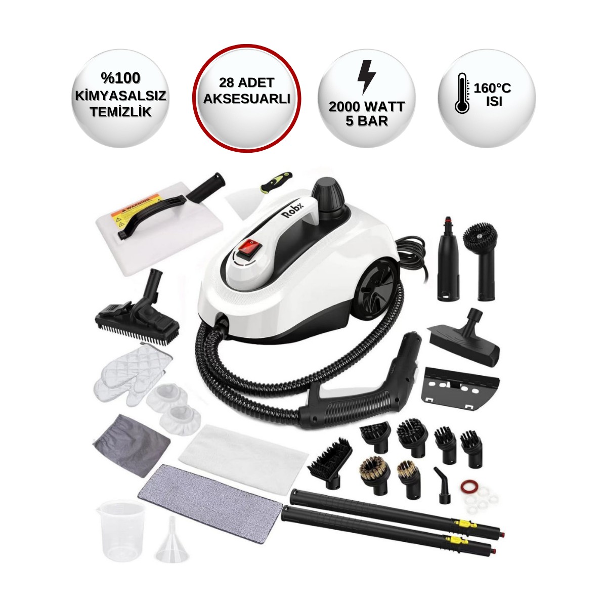 Robx S608 Yeni Nesil Çok Fonksiyonel 28 Adet Aksesuar 5 Metre Kablolu Buharlı Temizlik Makinesi
