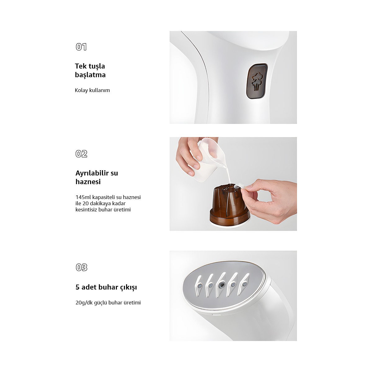20g/dk güçlü buhar üretimi ile tüm inatçı kırışıklıklarda hatta ipek gibi hassas kumaşlarda bile mükemmel sonuçlar…