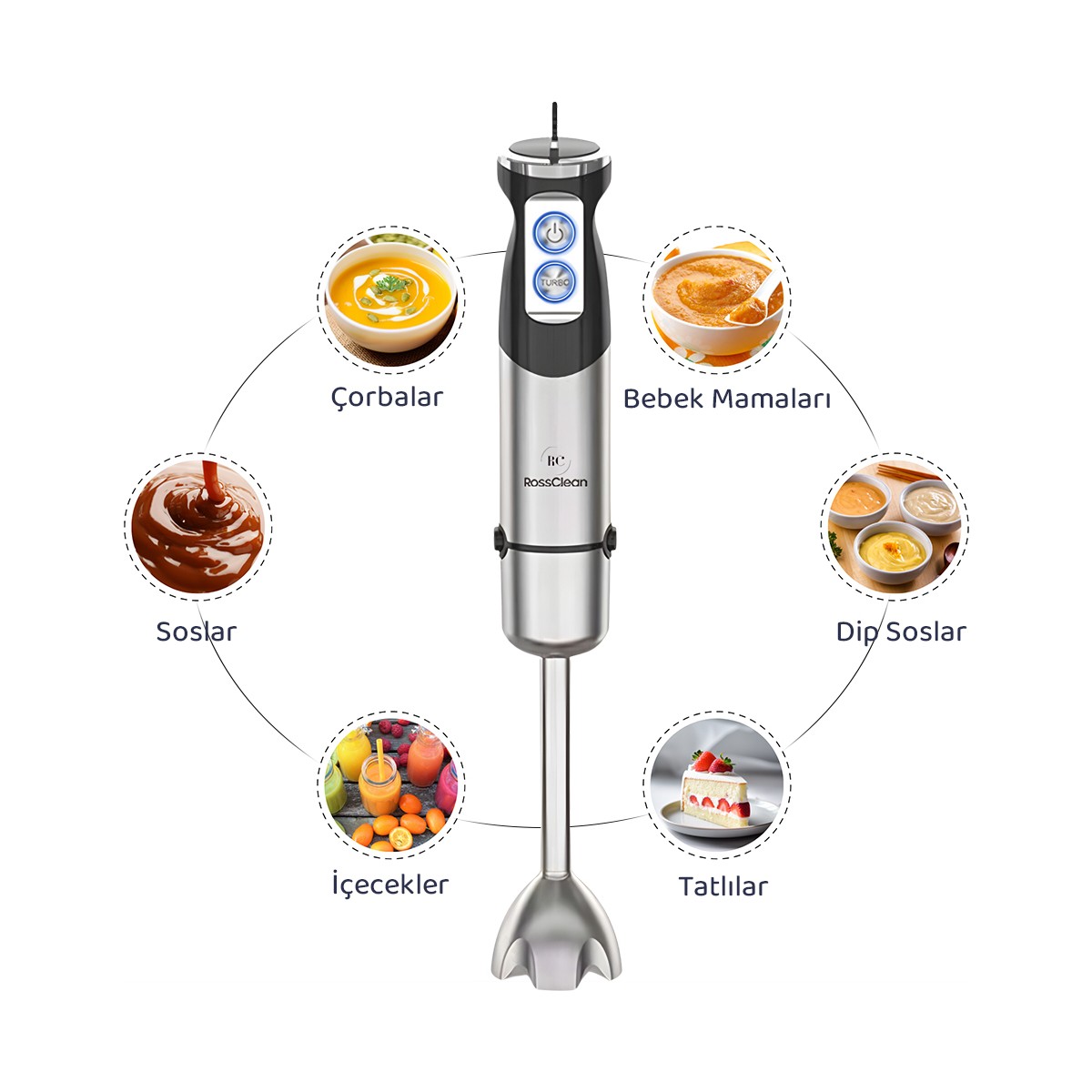RossClean Master Pro El Blenderi Çubuk Blender 1000W 4 Bıçaklı Çelik Tasarım için 25 değerlendirme