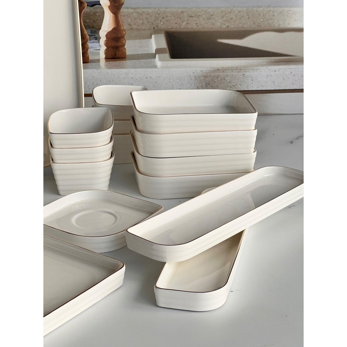 Modern ve kullanışlı Lilian Gold kahvaltı takımı, sofralarınıza modern bir dokunuş getiriyor. 6 kişilik kullanım için tasarlanan set , tüm ihtiyaçlarınızı karşılayacak şekilde özenle kombinlenmiştir.