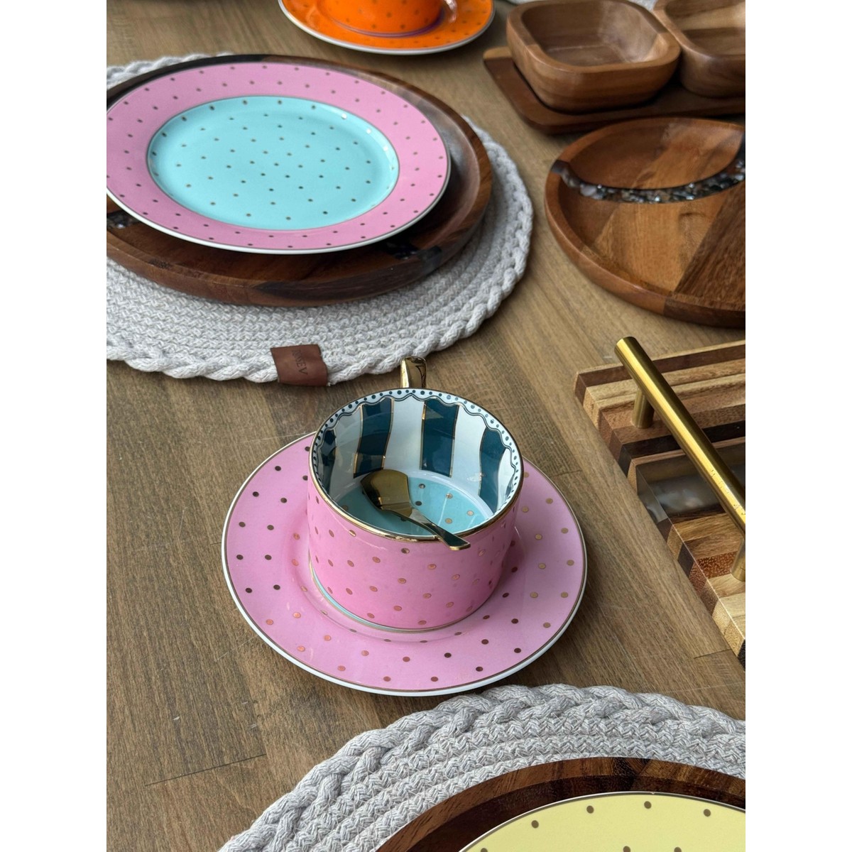 Renklerin enerjisini sofranıza taşıyan 52 Parçalık Puantiyeli Kahvaltı Takımı, modern sunum anlayışıyla buluşarak özel anlarınıza şıklık katıyor. Her biri özenle tasarlanmış bu set, pastel tonlardaki puantiyeli detayları ve ahşap akasya sunumluklarıyla zarif bir bütünlük sunuyor.