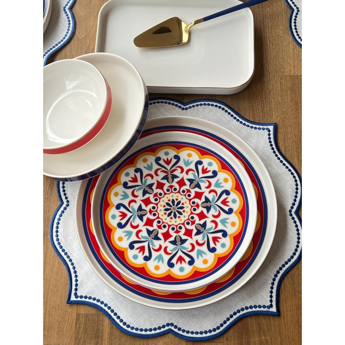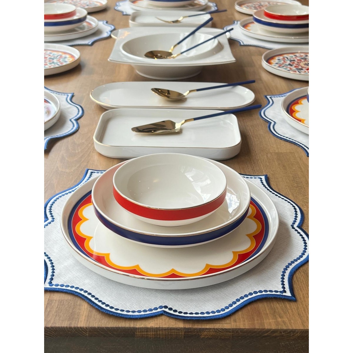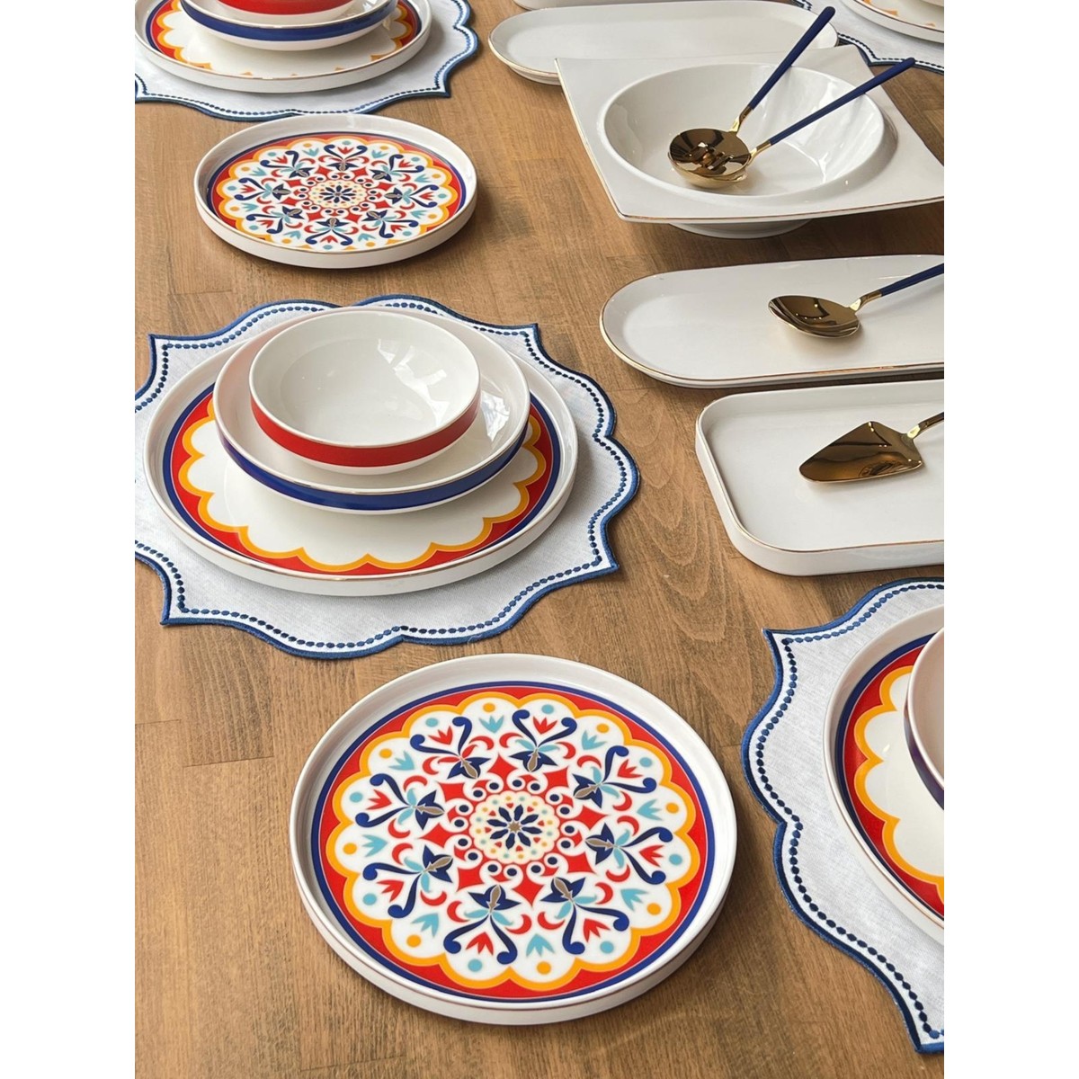 1.Kalite Porselen Yemek Takımı Set ROSSEV tarafından hazırlanmıştır. 40 Parça Set İçeriği ; 6 Adet Amerikan Servis 6 Adet Servis Tabak 6 Adet Yemek Tabak 6 Adet Pasta Tabak 6 Adet Çorba Kasesi 2 Adet Dikdörtgen Sunum Tabak 2 Adet Oval Sunum Tabak 1 Adet Yuvarlak Salata Kasesi 1 Adet 5 Parça Salata Servis Seti *Set içeriğinde ki parçalar farklı firmalara ait olup ROSSEV tarafından kombinlenmiştir. **Ürünler düşük ısıda sıvı deterjan ile makinada yada elde yıkamaya uygundur.