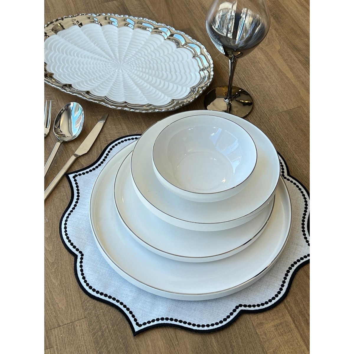 6 Adet Servis Tabak 26 cm 6 Adet Yemek Tabak 18 cm  6 Adet Pasta Tabak 21 cm 6 Adet Çorba Kasesi 13 cm *Ürün düşük ısı sıvı deterjan ile bulaşık makinasında yada elde yıkamaya uygundur. *Yemek takımı dışında ki tüm parçalar görsel amaçlı kullanılmış olup,set içeriğine dahil değildir.