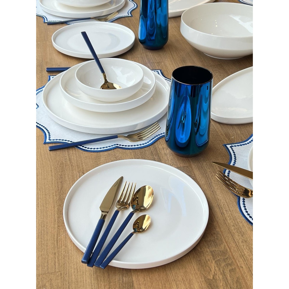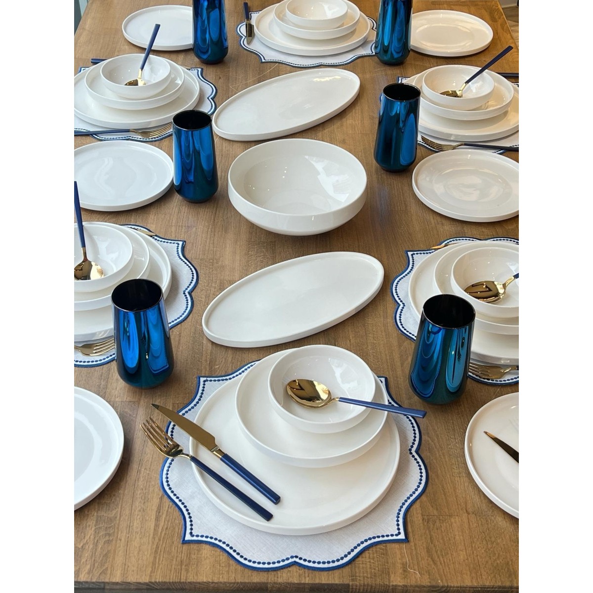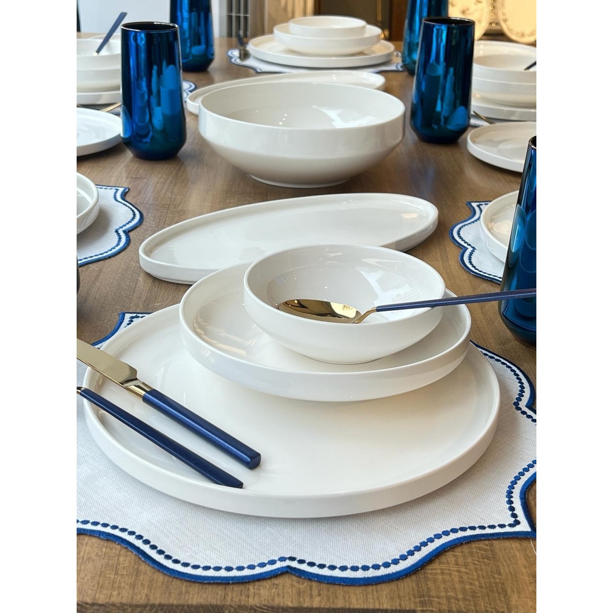 1.Kalite Porselen Yemek TakımıSet ROSSEV tarafından hazırlanmıştır.81 Parça Set İçeriği ;6 Adet Amerikan Servis6 Adet Servis Tabak6 Adet Yemek Tabak6 Adet Pasta Tabak6 Adet Çorba Kasesi6 Adet Yemek Kaşık6 Adet Yemek Çatal6 Adet Yemek Bıçak6 Adet Tatlı Kaşık6 Adet Tatlı Çatal6 Adet Tatlı Bıçak6 Adet Çay Kaşık2 Adet Oval Sunum Tabak1 Adet Yuvarlak Salata Kasesi6 Adet Meşrubat Badak *Set içeriğinde ki parçalar farklı firmalara ait olup ROSSEV tarafından kombinlenmiştir.*Ürün düşük ısı sıvı deterjan ile bulaşık makinasında yıkamaya uygundur. *Çatal Kaşık Takımı Sadece ELDE yıkama yapılabilir.