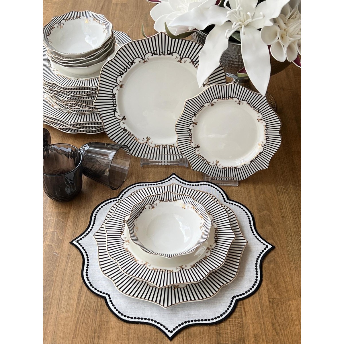 1.Kalite Porselen Yemek Takımı24 Parça Set İçeriği ;6 Adet Servis Tabak 27 cm 6 Adet Yemek Tabak 21 cm 6 Adet Pasta Tabak 21 cm 6 Adet Çorba Kasesi 13 cm *Ürün düşük ısı sıvı deterjan ile bulaşık makinasında yada elde yıkamaya uygundur. *Yemek takımı dışında ki tüm parçalar görsel amaçlı kullanılmış olup,set içeriğine dahil değildir.