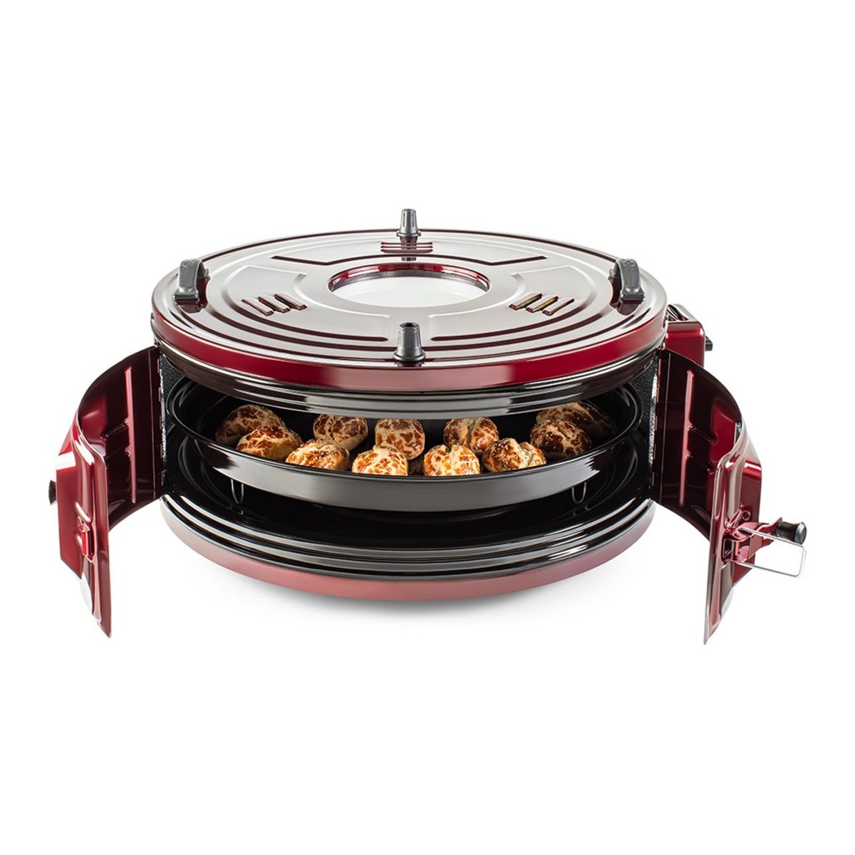 Şamdan Termostatlı, Cam Kapaklı, 42 Lt Yuvarlak Davul Fırın – Emaye-Alüminyum Gövde, Enerji Tasarruflu Çok Fonksiyonlu