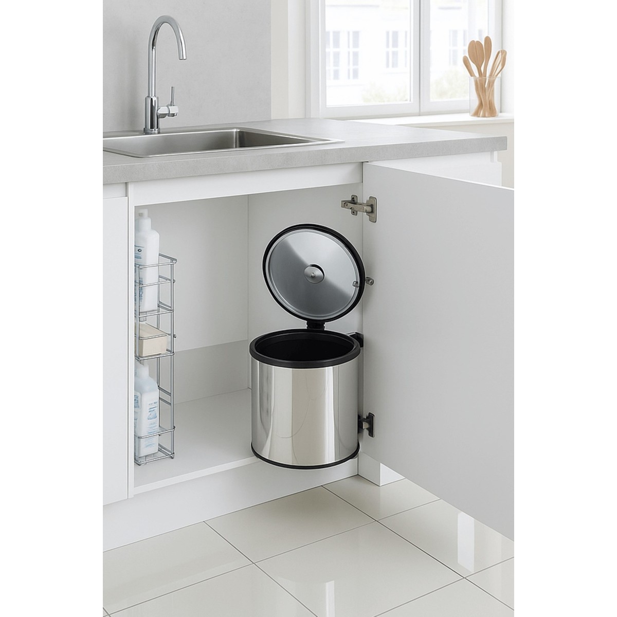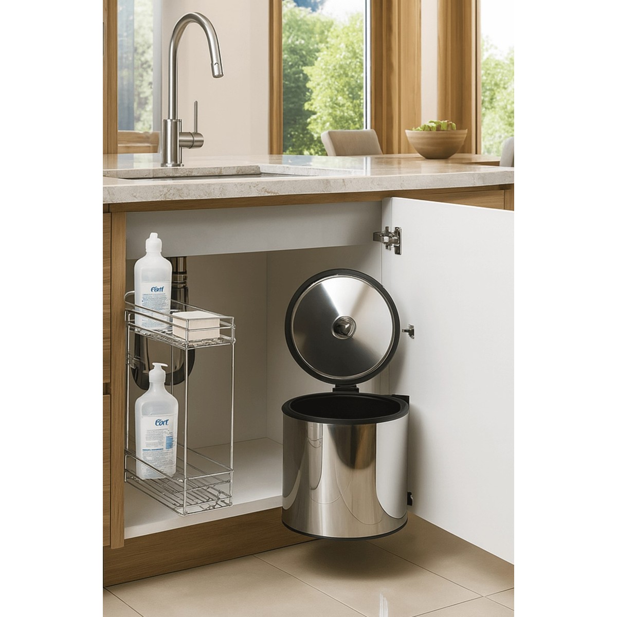 Sas Haus Banyo, Mutfak Dolabı Içi 11 Litre Metal Çöp Kovası – Krom, Tüm Dolaplara Uyumlu Tezgah Altı Çöp Kovası, Banyo, Dolap Içi Çöp Kovası 11 Lt.