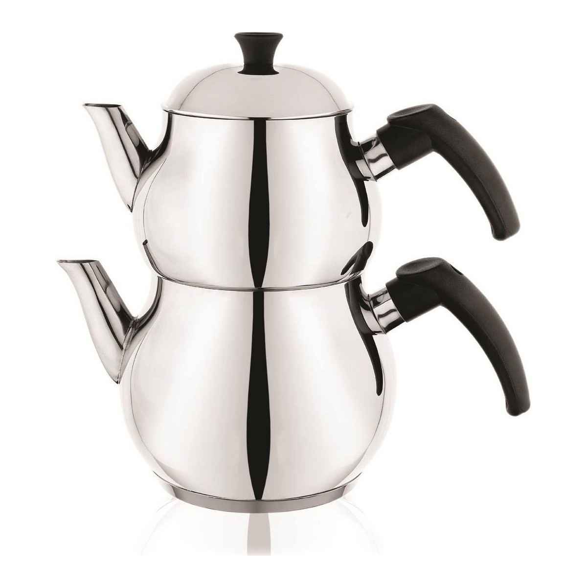 Schafer Base 4 Parça Paslanmaz Çelik Çaydanlık Takımı 1,25 L Üst Demlik ve 1,85 L Alt Hazne ile Şık Tasarım