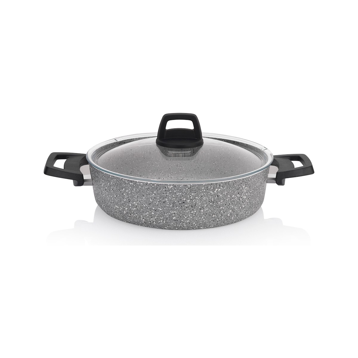 Schafer Eternal Basık Tencere 26 cm + Tava 26 cm-2’li 3 Parça Cam Kapaklı Set-Gri