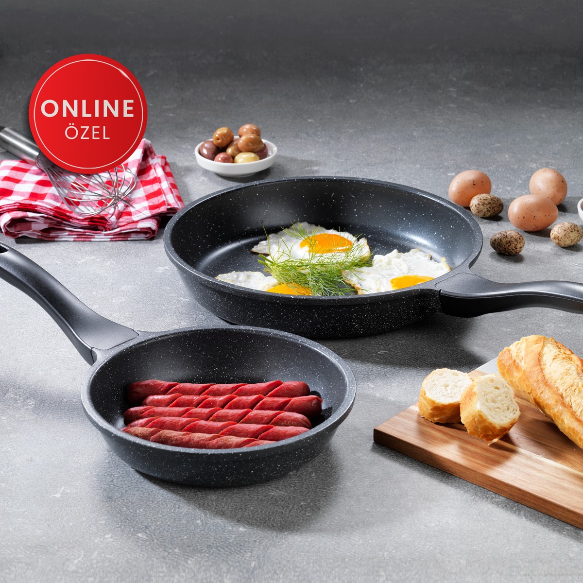 Tava seti sağladığı özellikler ile mutfağınızın en sık kullanılan ürünleri arasına girer. Granit döküm tavalar özellikle granit taşı içerisindeki mineralleri barındırdığı için sağlık için son derece uygundur. Ergonomik, ısıya karşı dayanıklı bakalit kulpları olan setin hepsi aynı renk özelliğine sahip. Yanmaz yapışmaz granit döküm tavanız koyu gri rengiyle modern bir görüntü sağlar.