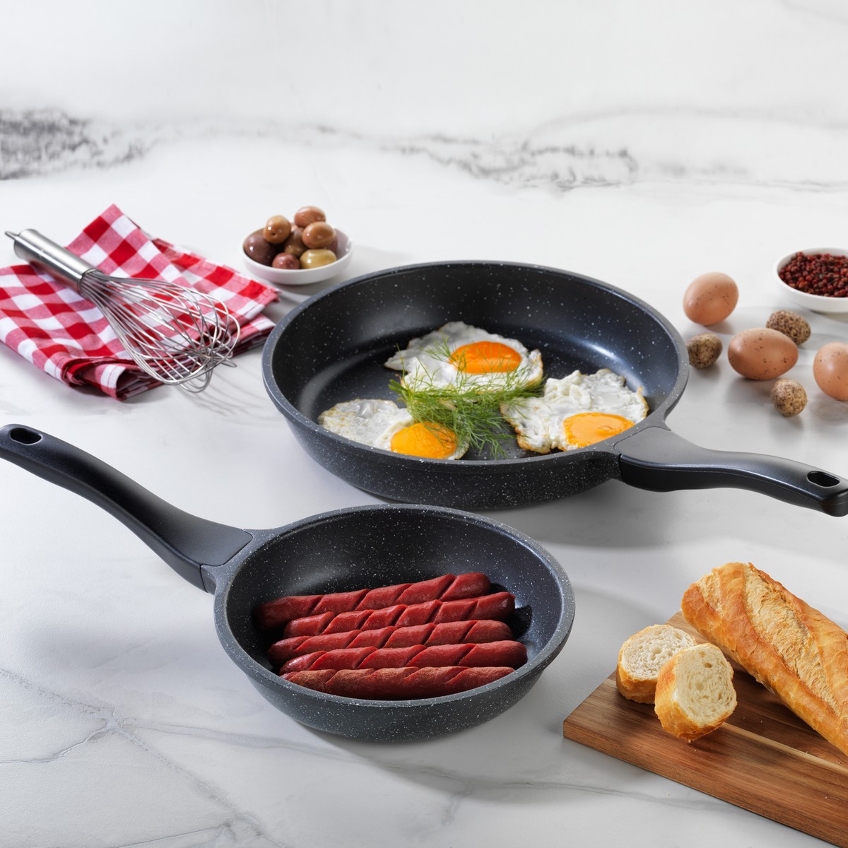 Schafer Famos Yanmaz Yapışmaz 2 Parça Granit Döküm Tava Seti – Gri