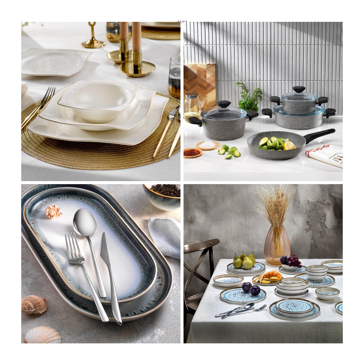 Schafer Gold Sofra & Mutfak Seti | Yemek Takımı+Çkb+Tencere Seti+2 Çeşit 24 Prç Yemek Takımı